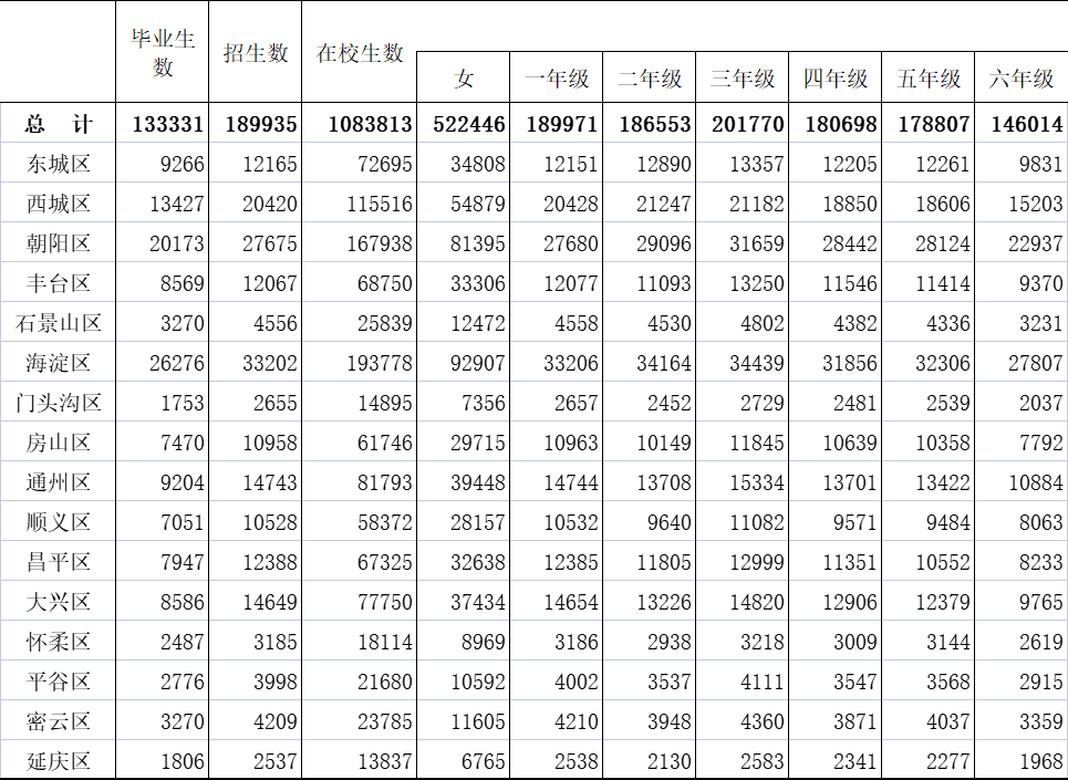 | 朝阳区 | 70 | 5295 | 860 | 909 | 932 | 914 | 889 | 791 | |