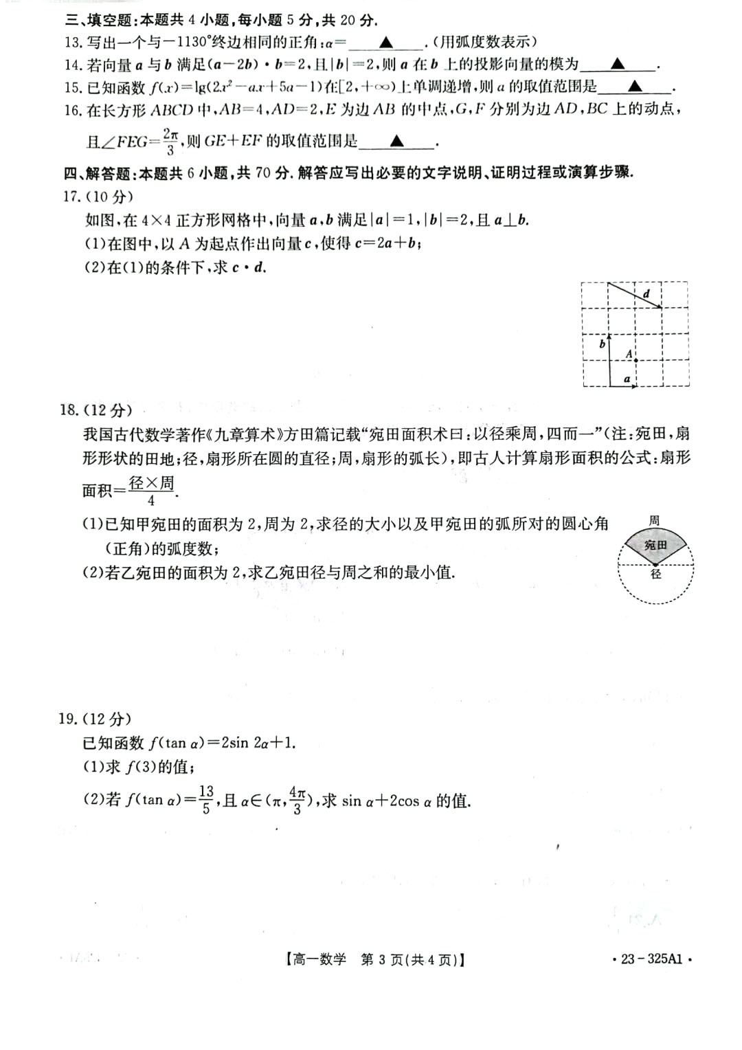 2023高一金太阳第一次联考数学试题及答案(23-325AI)