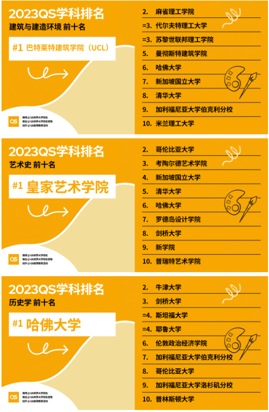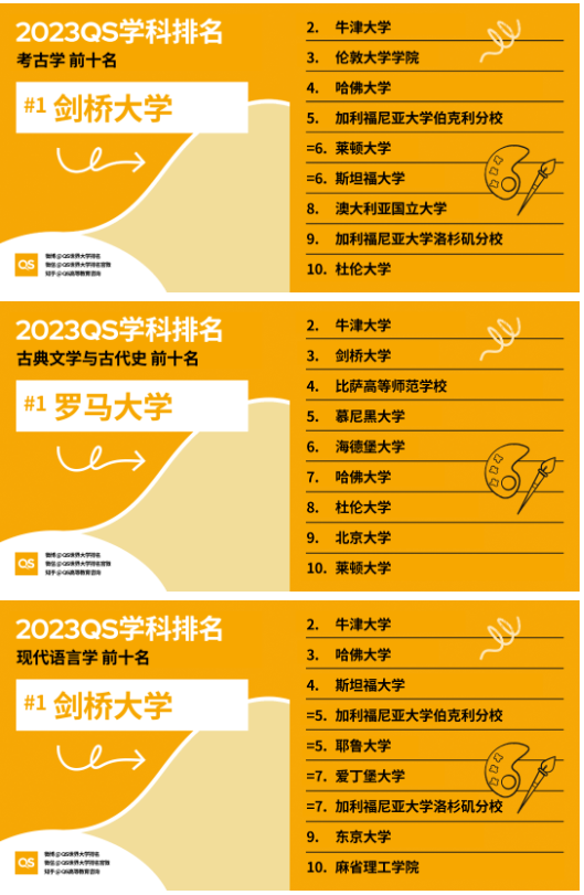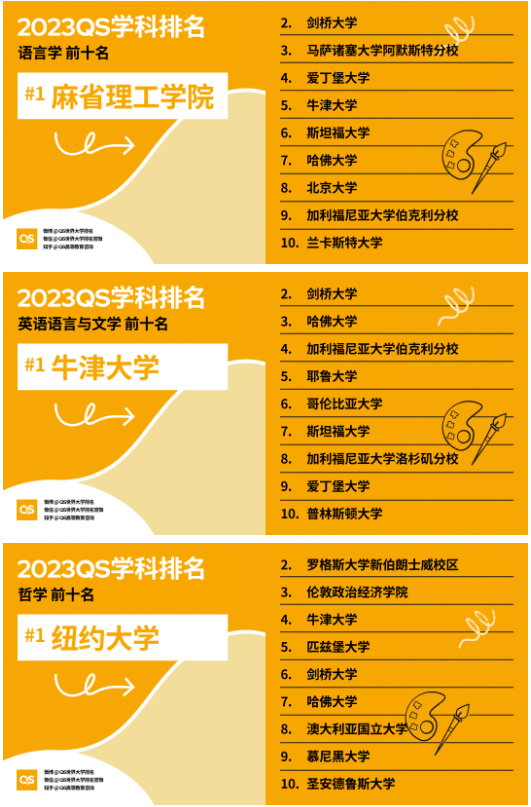 2023QS世界大学学科排名:艺术与人文各学科Top10