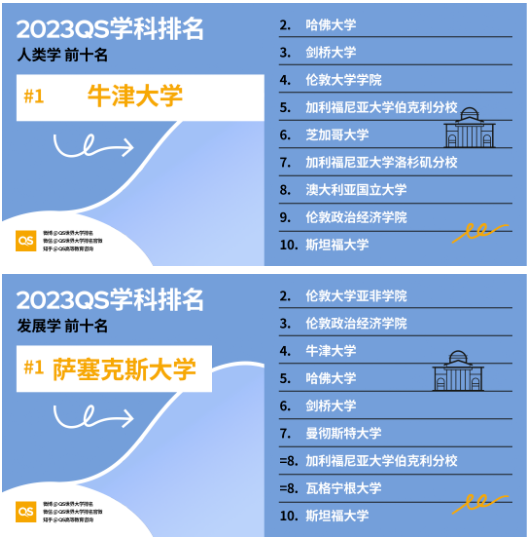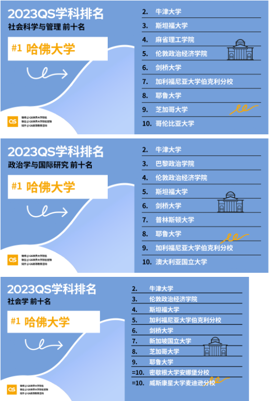 2023QS世界大学学科排名:社会科学与管理各学科Top10