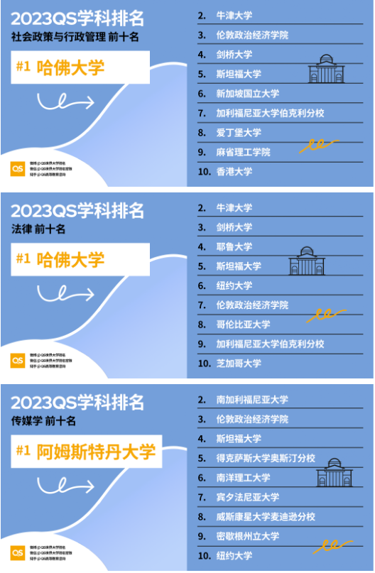本文整理了2023QS世界大学学科排名中社会科学与管理各学科Top10院校,供大家查看。3月22日,2023QS世界大学学科排名公布,分为五个大的学科领域,本文整理了社会科学与管理各学科TOP10院校清单,大家在根据学科专业选大学时可以参考。