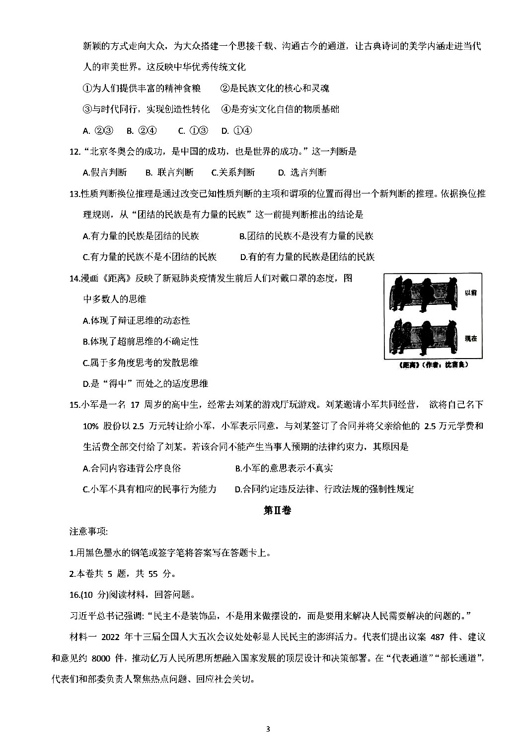 2022年天津高考政治试题及答案
