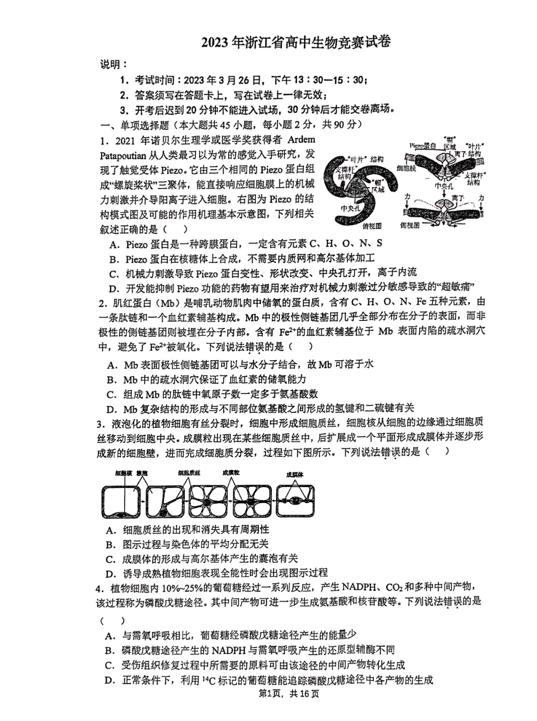 2023年浙江省生物竞赛初赛试题