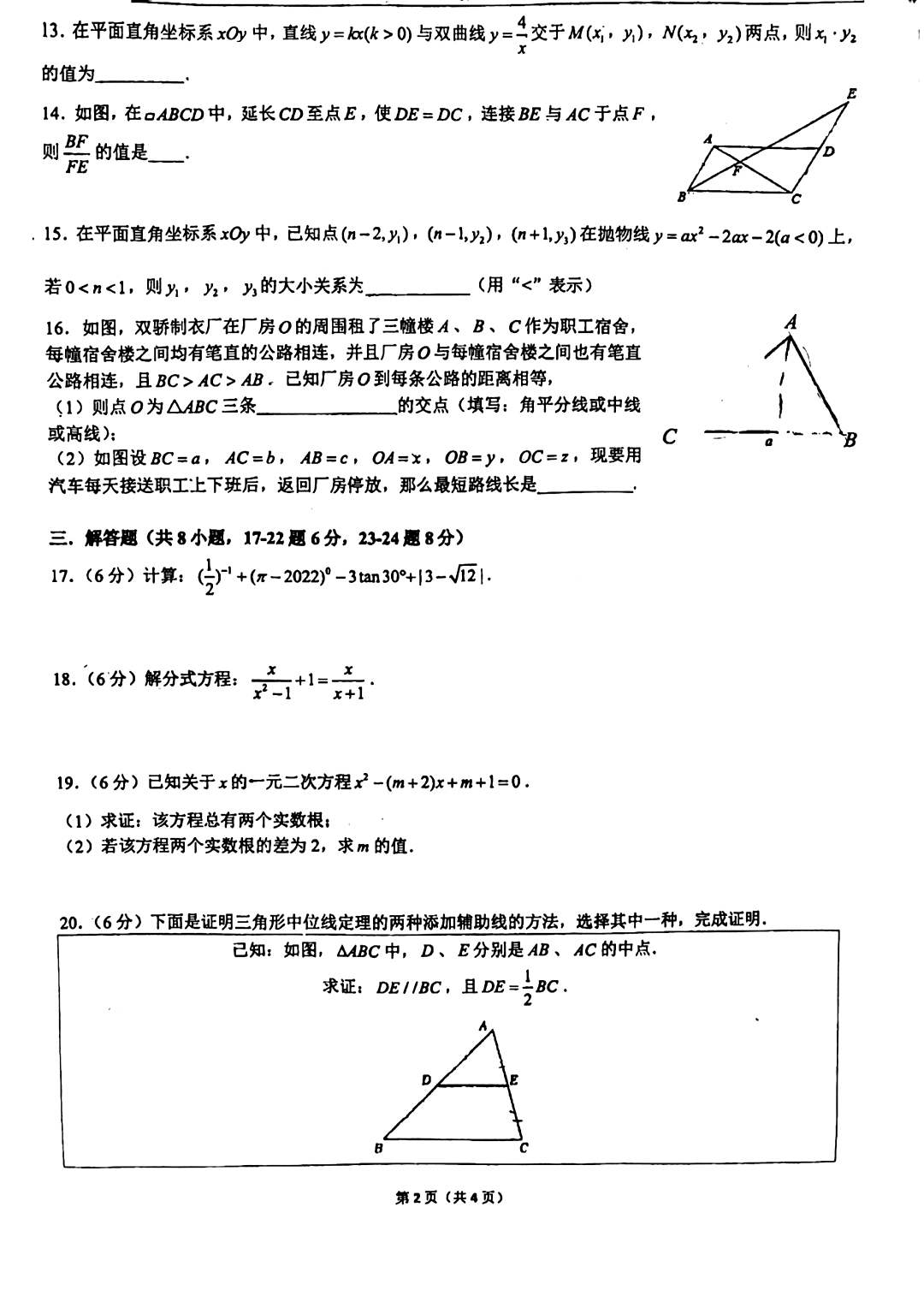 2025-2026学年北京二中初三下开学考数学试题及答案10