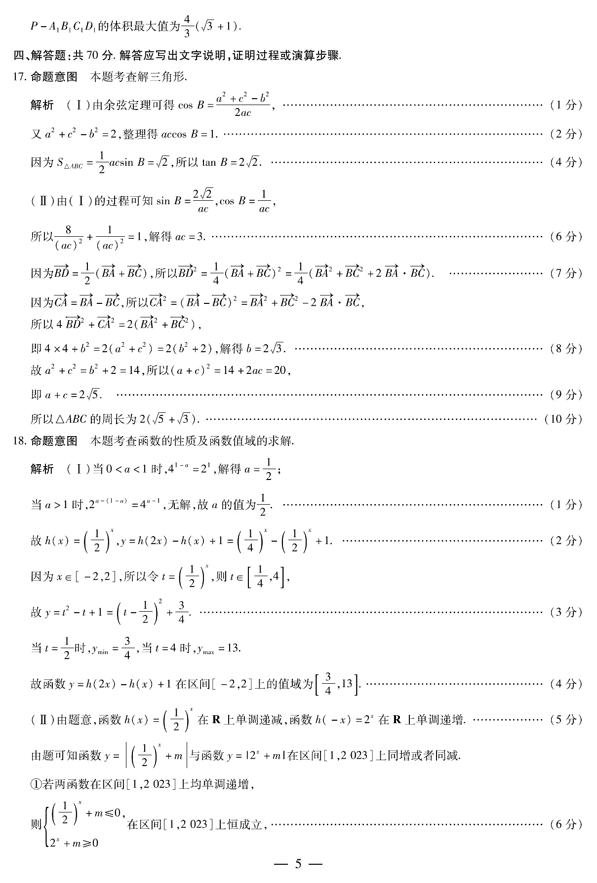 2023安徽天一大联考皖豫名校联盟第二次联考数学试题及答案
