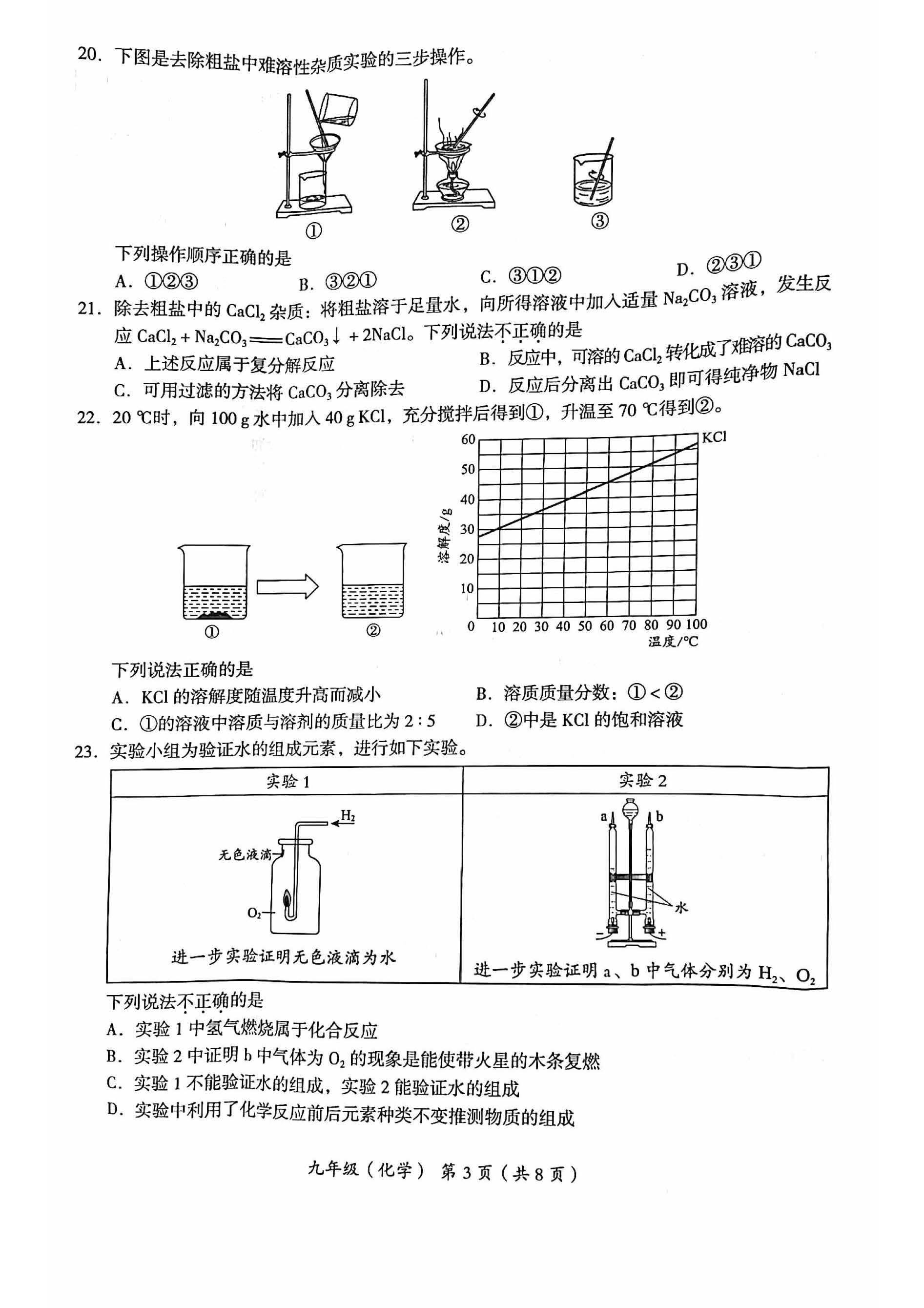 海淀初三一模试题一模化学试题答案2023初三一模