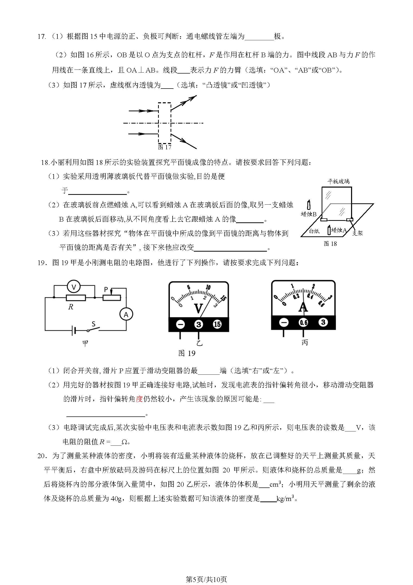 门头沟初三一模试题一模物理试题答案2023初三一模