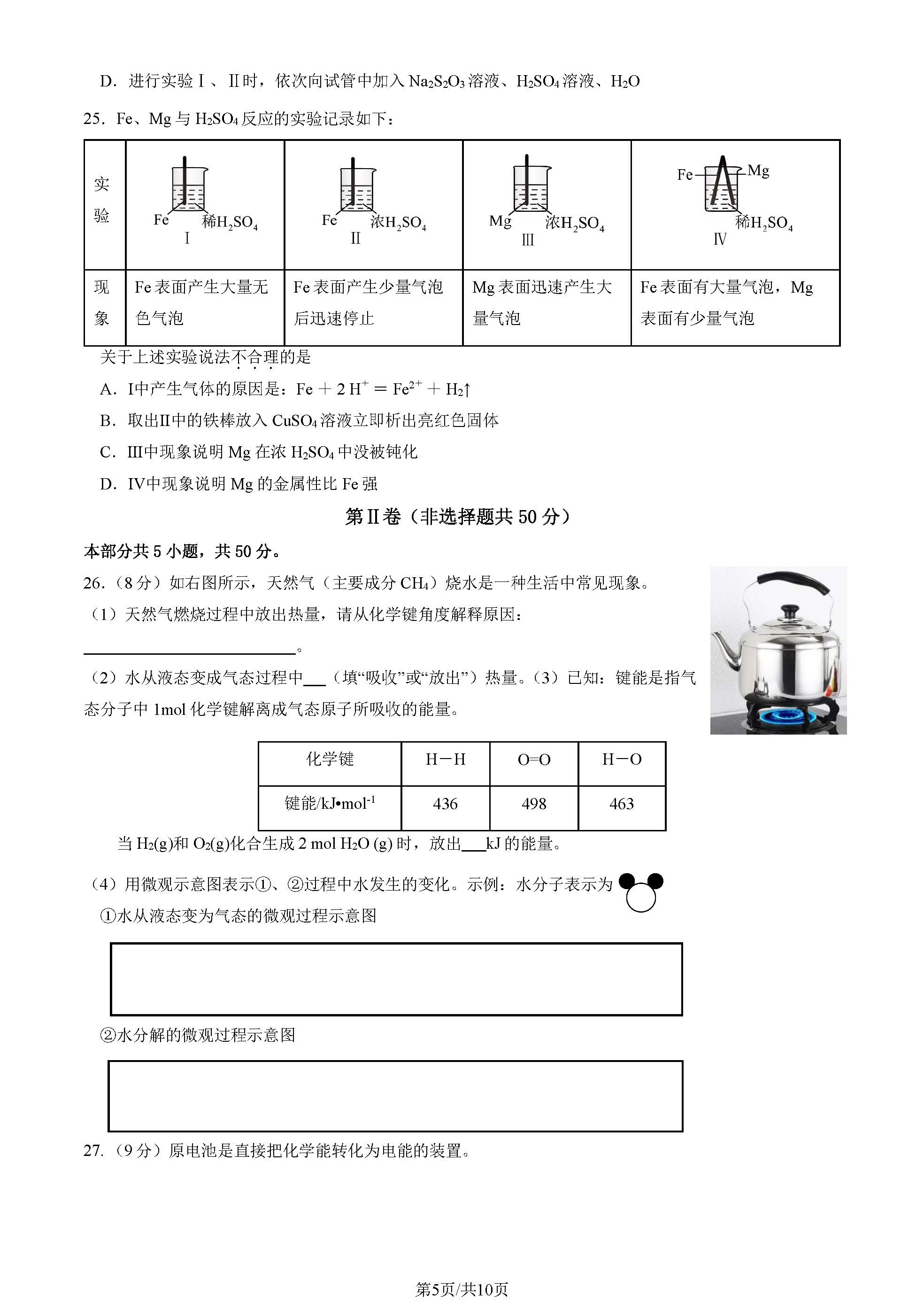 2023北京丰台高一(下)期中化学(B卷)试题及答案