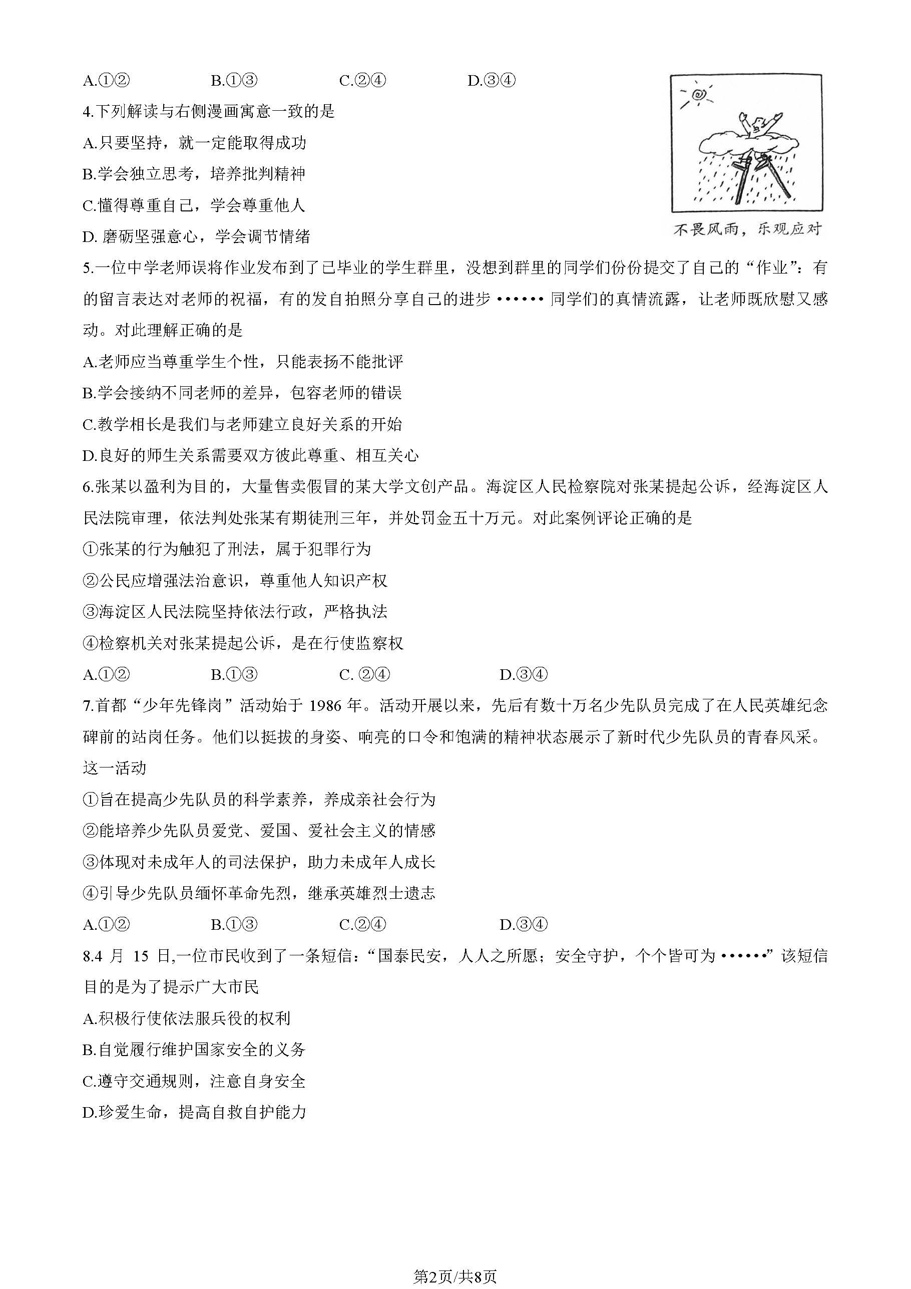 2023年北京海淀区初三二模道法试题及答案