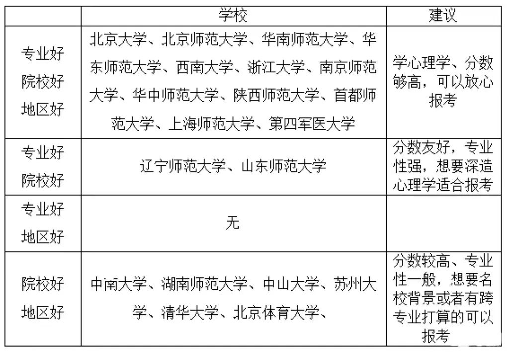 总结:整体来说心理学考生需要考虑三个因素,专业排名、院校排名和地区优势。院校基本是属于师范类院校,华南师范大学性价比较高。