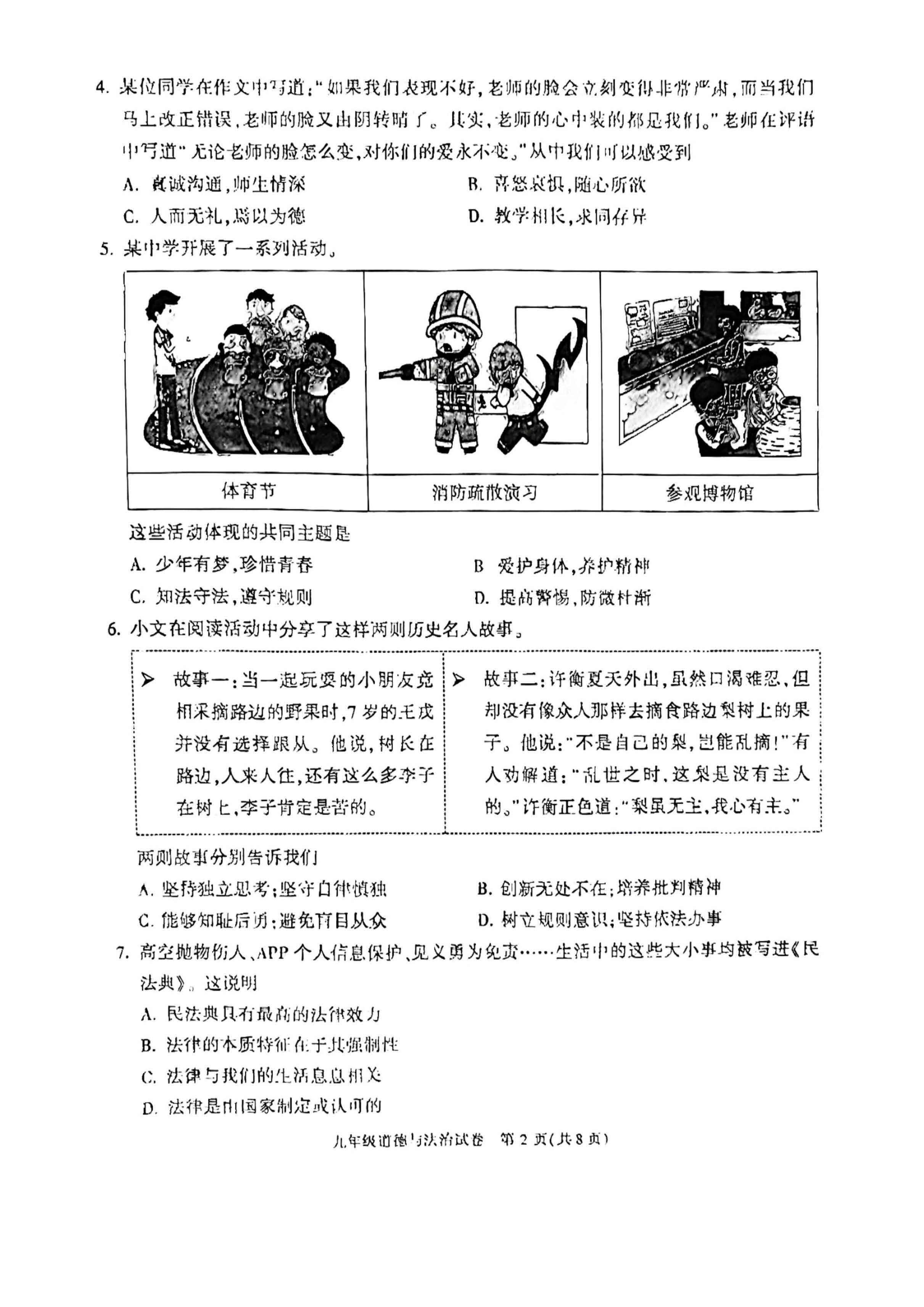本文整理了2023年北京朝阳区初三二模道法试题及答案,分享给同学们参考。