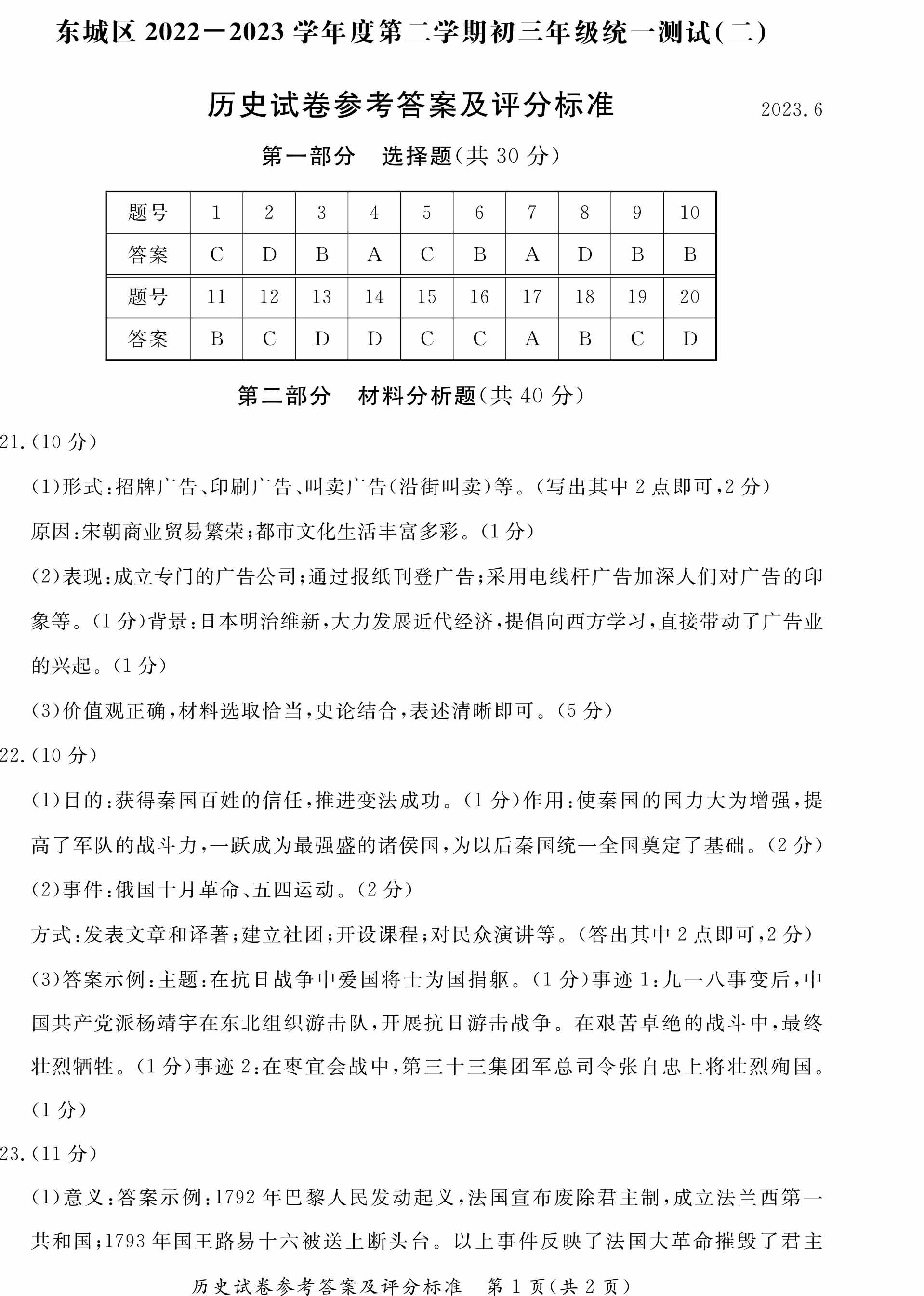 本文整理了2023年北京东城初三二模历史试题及答案,分享给同学们下载练习。