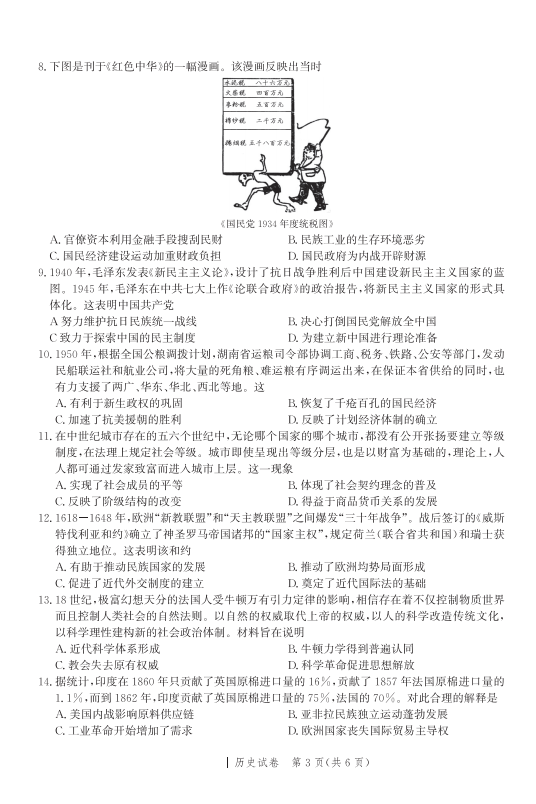 2023河北高三考前模拟练(临考信息卷)历史试题及答案
