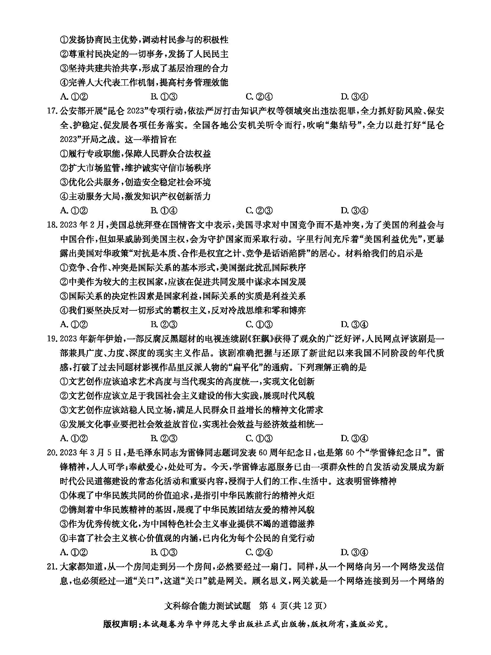 本文整理了2023年华大新高考联盟名校高考预测卷(四省名校)文综试题及答案,想要练习本套试题的考生可以点击本文下载。