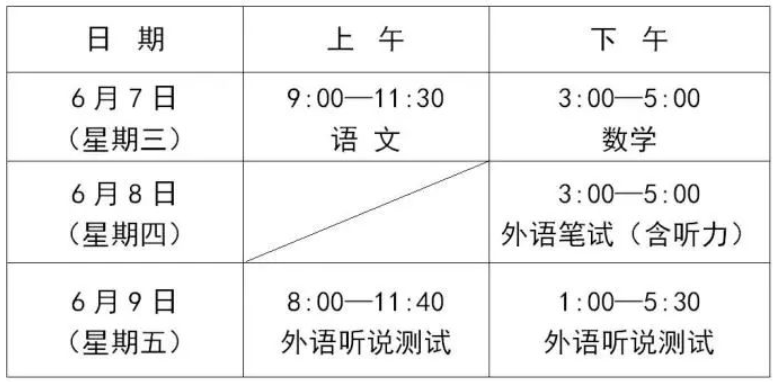 一、考生必须按规定时间参加考试。每科开考至少45分钟前凭准考证和有效证件原件(有效证件含:居民身份证、有照片的社保卡、驾驶证、护照、军人证)接受按规定进行的安检后进入考点。语文科目考试在开考后15分钟(上午9:15)禁止考生进入考点考试;数学科目考试在开考后15分钟(下午3:15)禁止考生进入考点考试;外语科目考试考前15分钟(下午2:45)禁止考生进入考点考试。考生可在开考前30分钟进入考场。