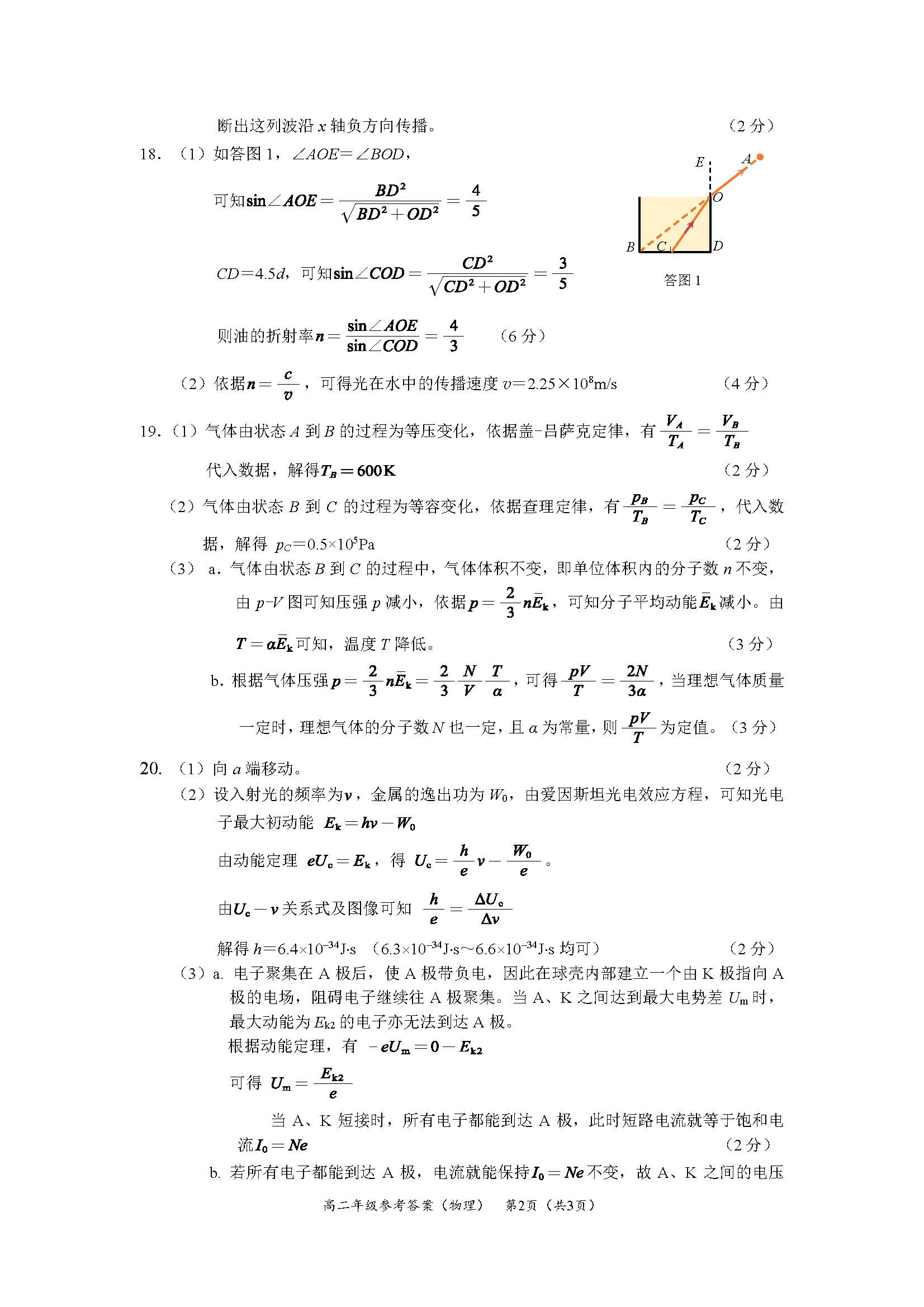 2022-2023学年北京海淀区高二下学期期末物理试题及答案