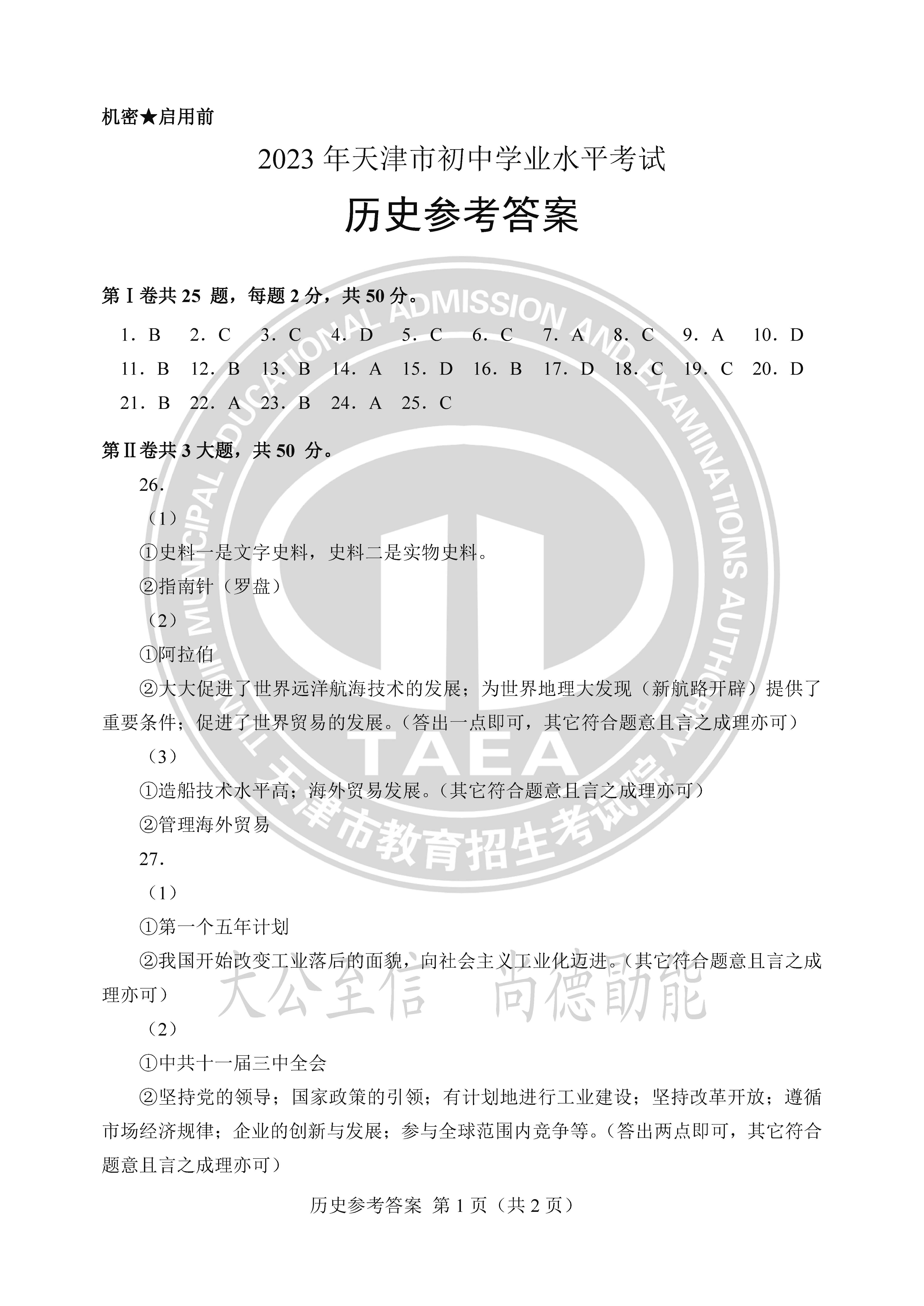 本文整理了2023年天津市初中学业水平考试历史试卷及参考答案,想要练习本套试题的考生点击本文下载电子版。