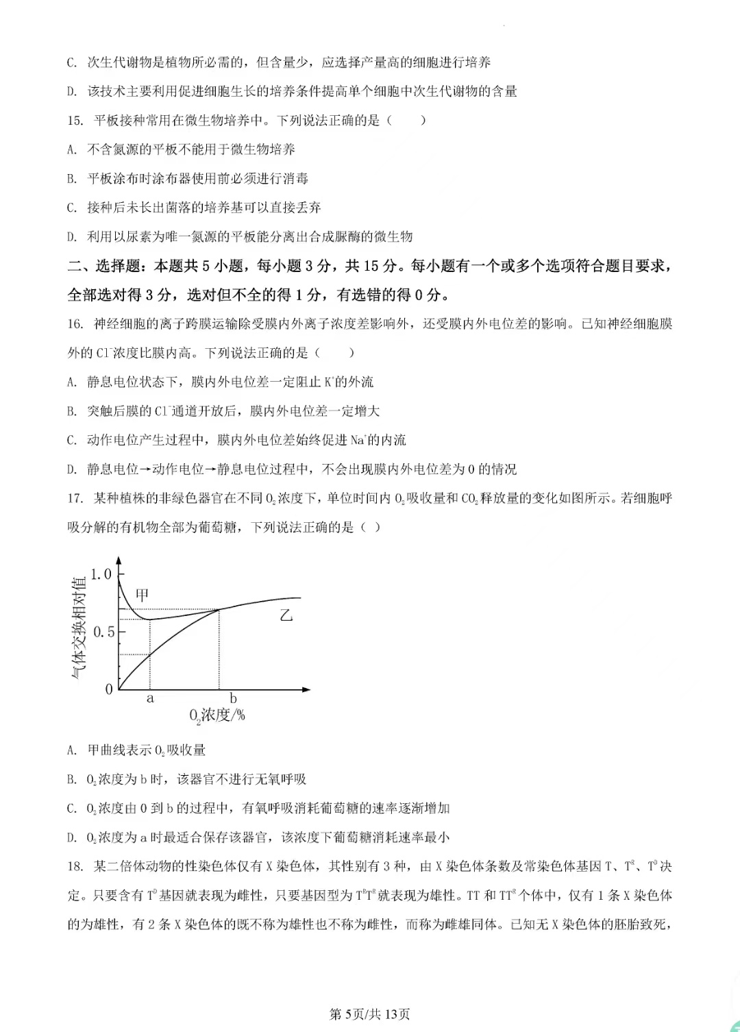 2023山东高考生物试题及答案