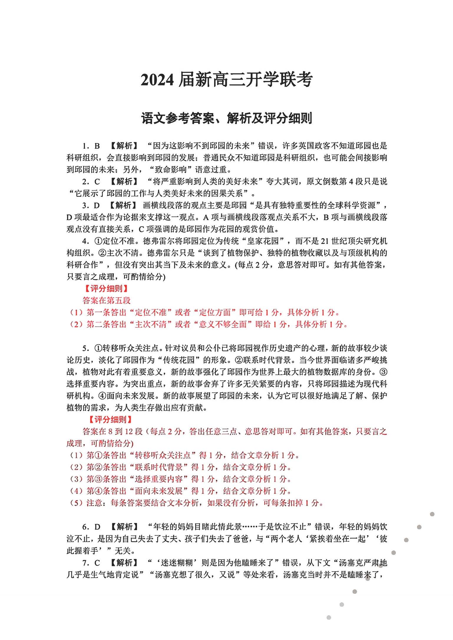 2024广东衡水金卷新高三8月开学联考语文试题及答案