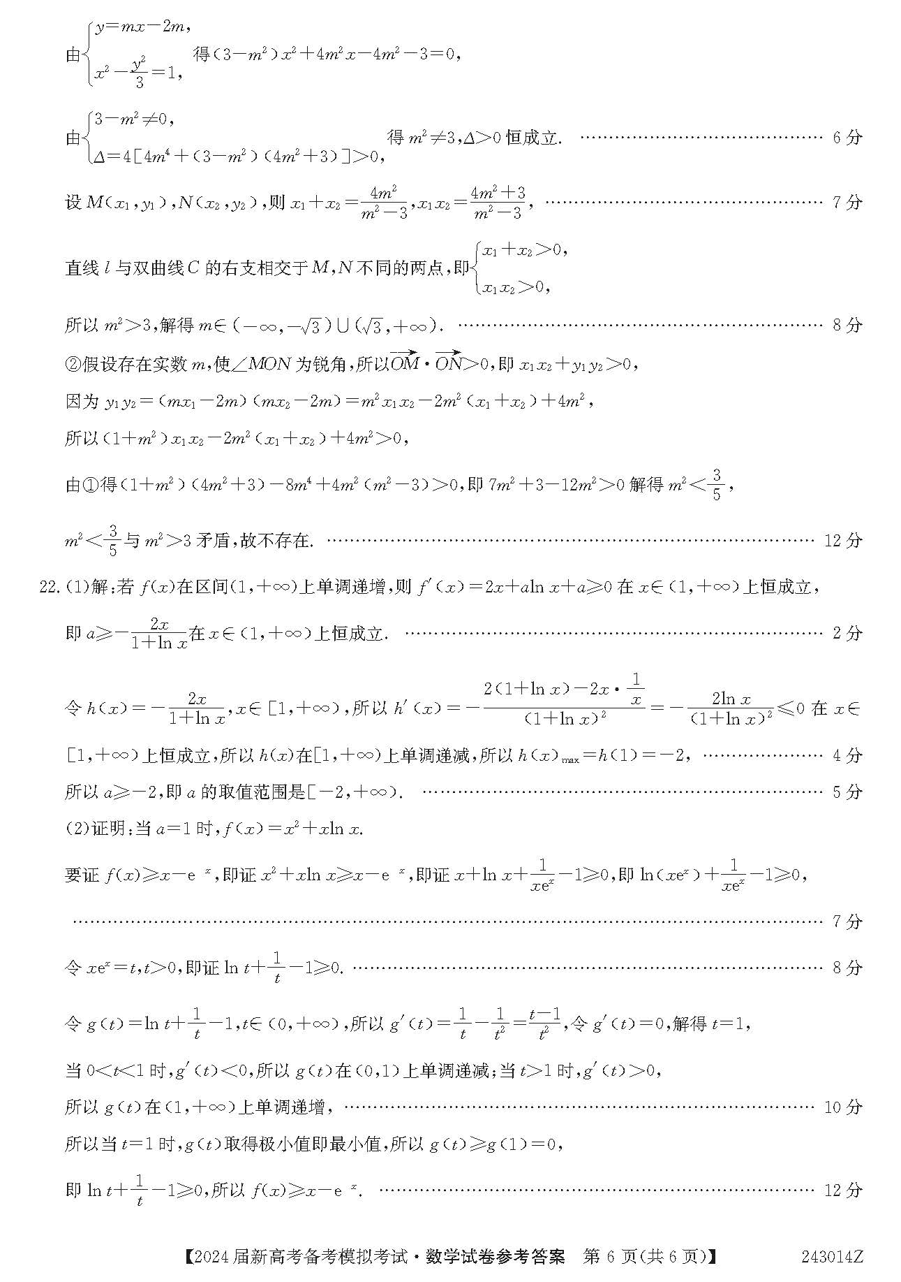 甘肃2024届新高考备考模拟考试(开学考试)数学试题及答案
