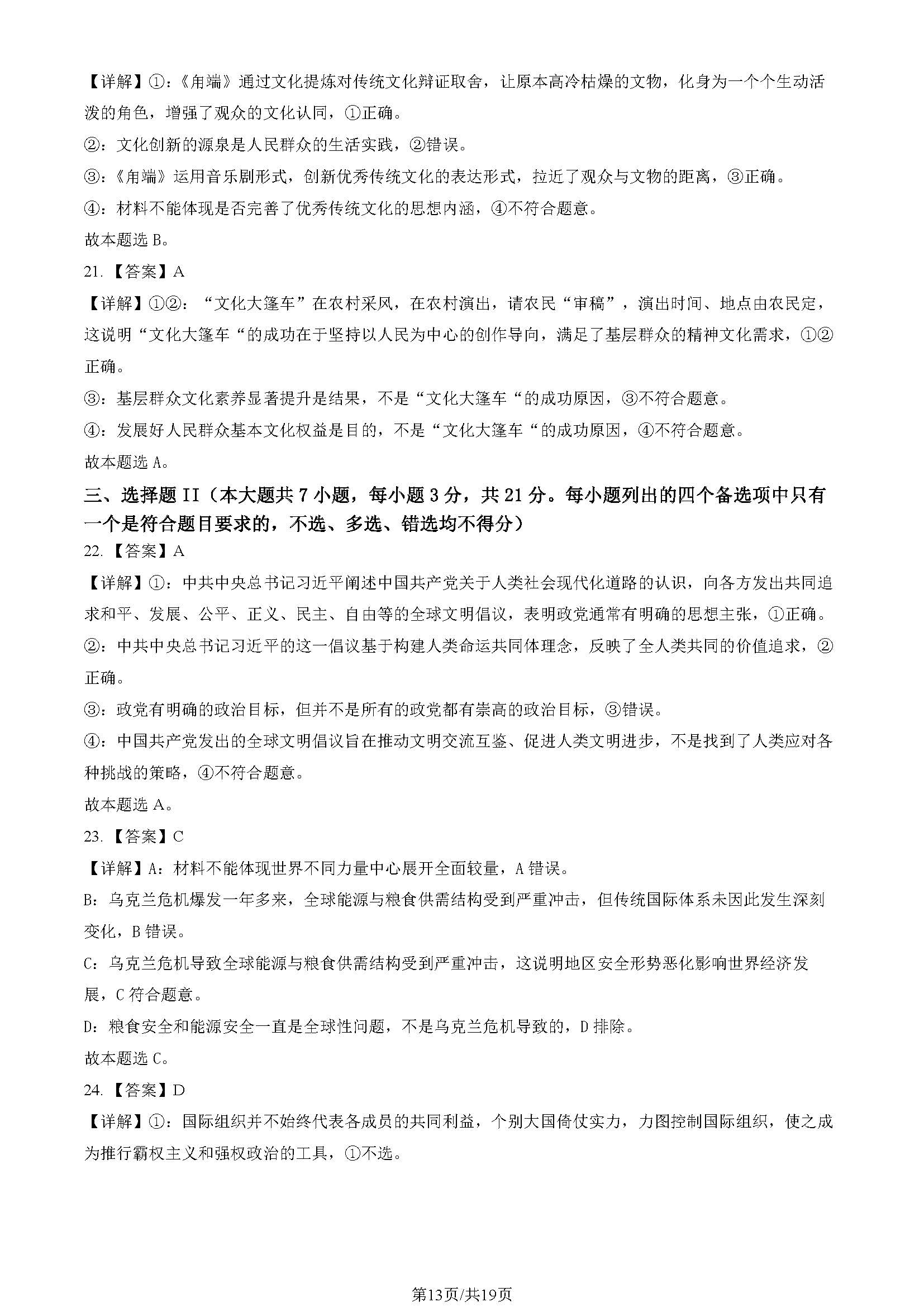 高考政治试题答案2023浙江高考