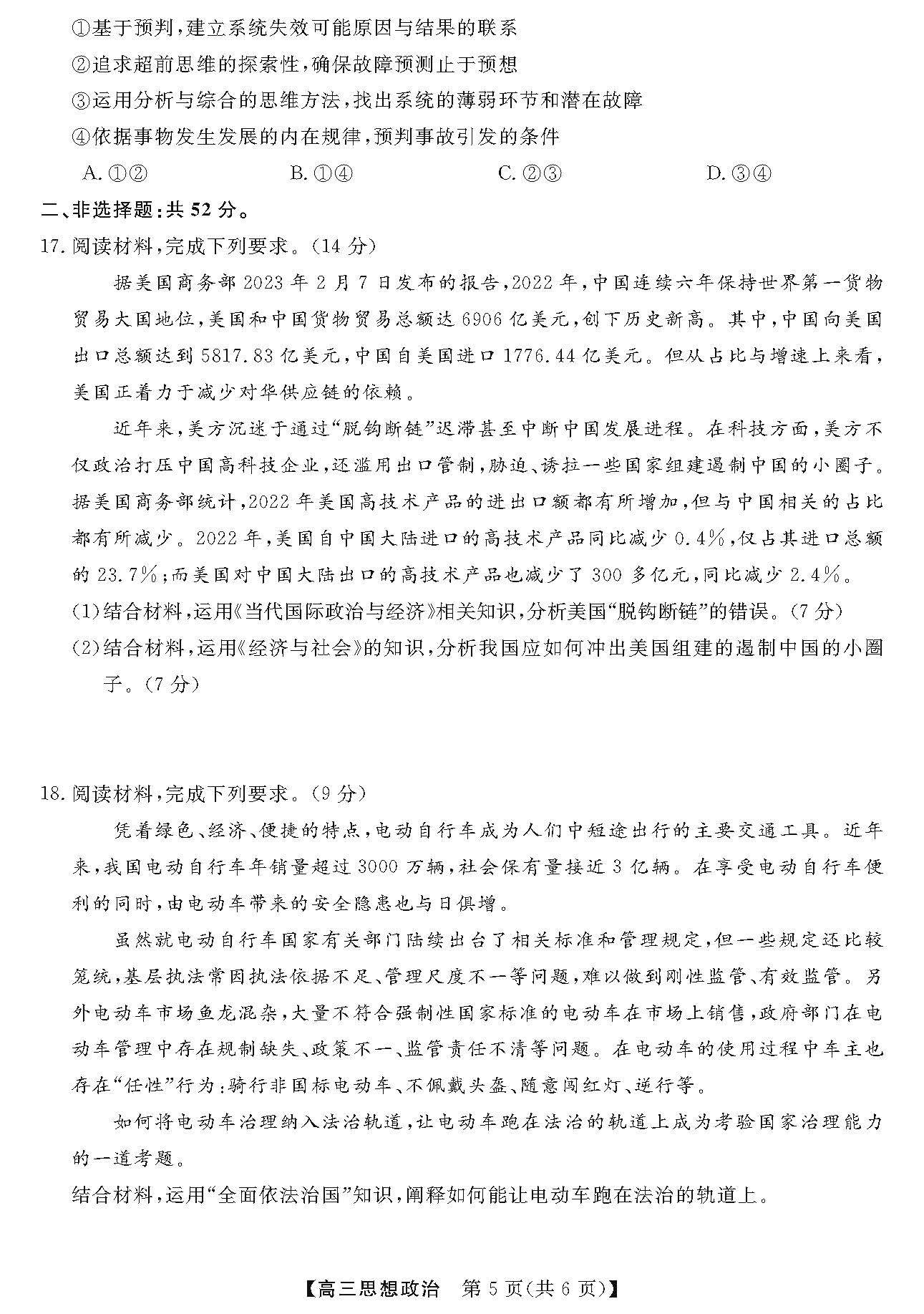 广东湛江市第一中学2024届高三上学期开学考试政治试题及答案