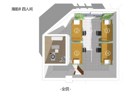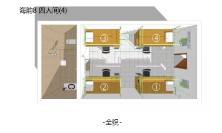 (4) 四人间2:长7.8米,宽3.5米,高3.20米。床铺长度:1.93m,宽:90cm