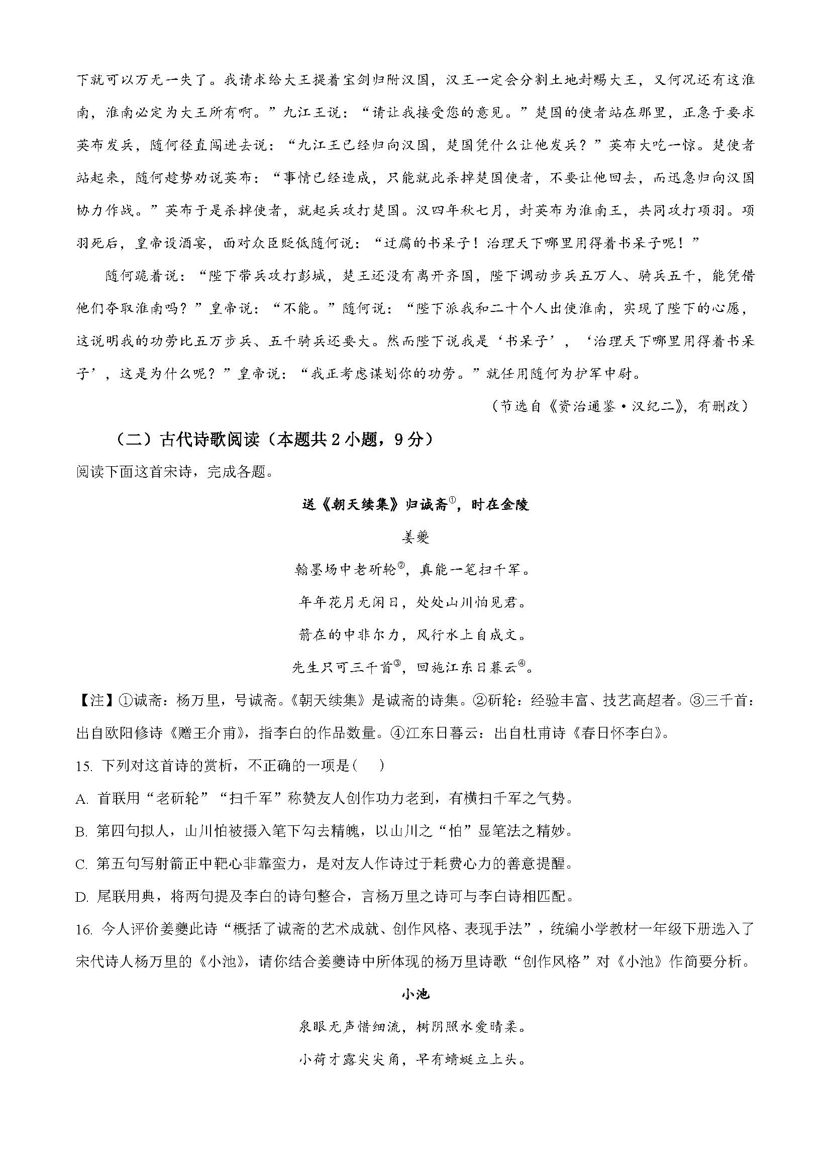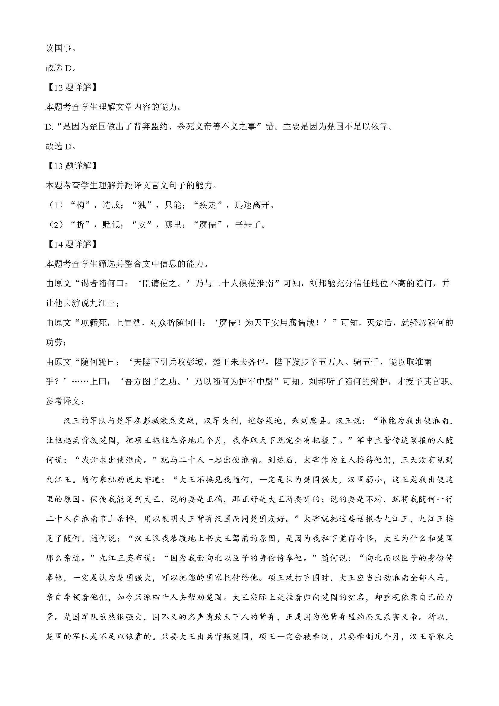 北京高考试题答案