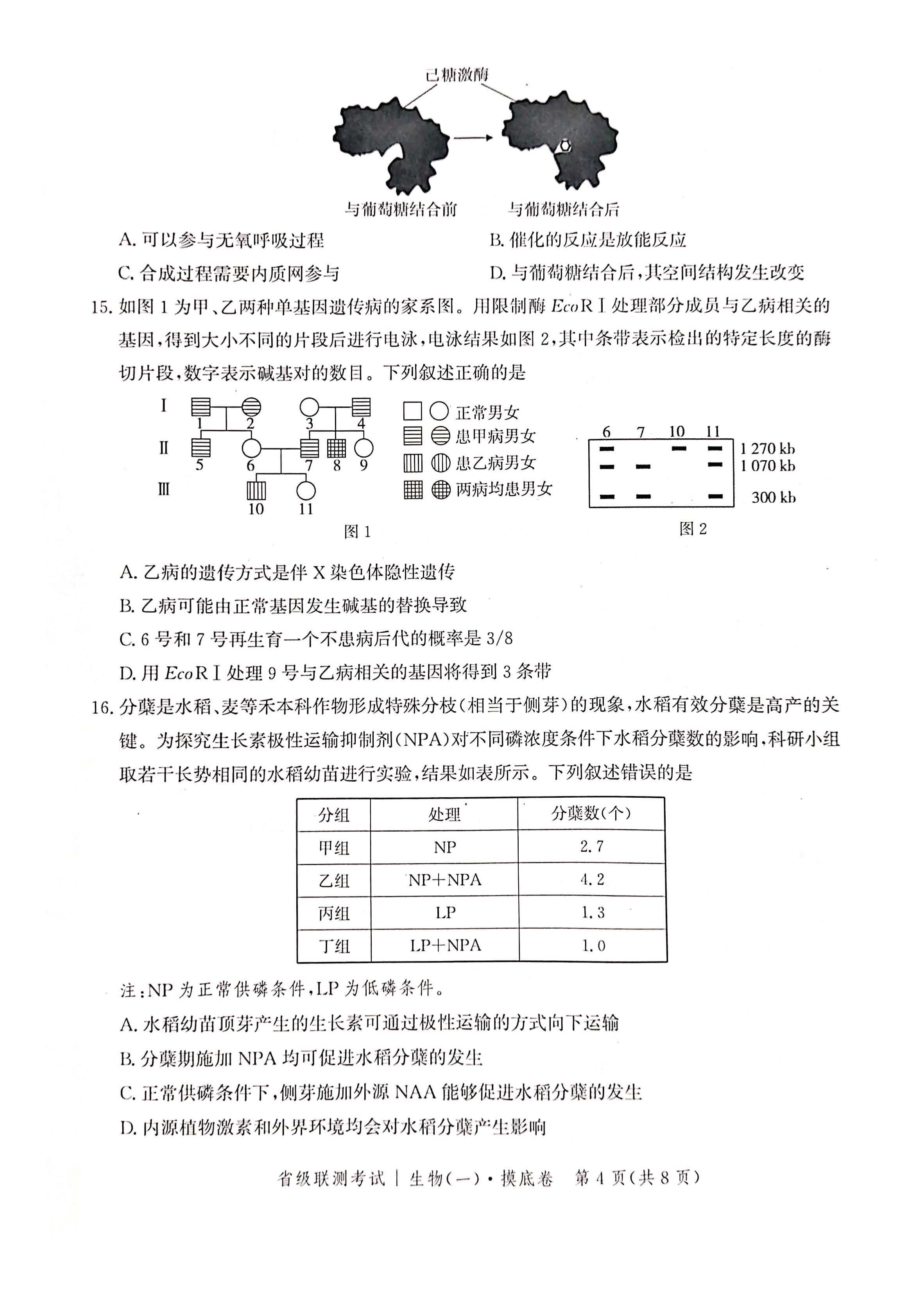 河北省2023-2024学年高三上学期省级联测考试生物试题及答案