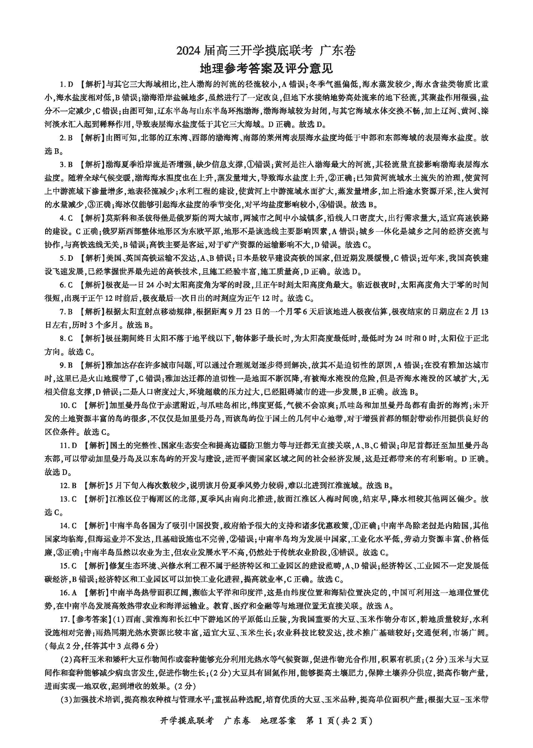 2024百师联盟高三开学考地理试题及答案(广东卷)