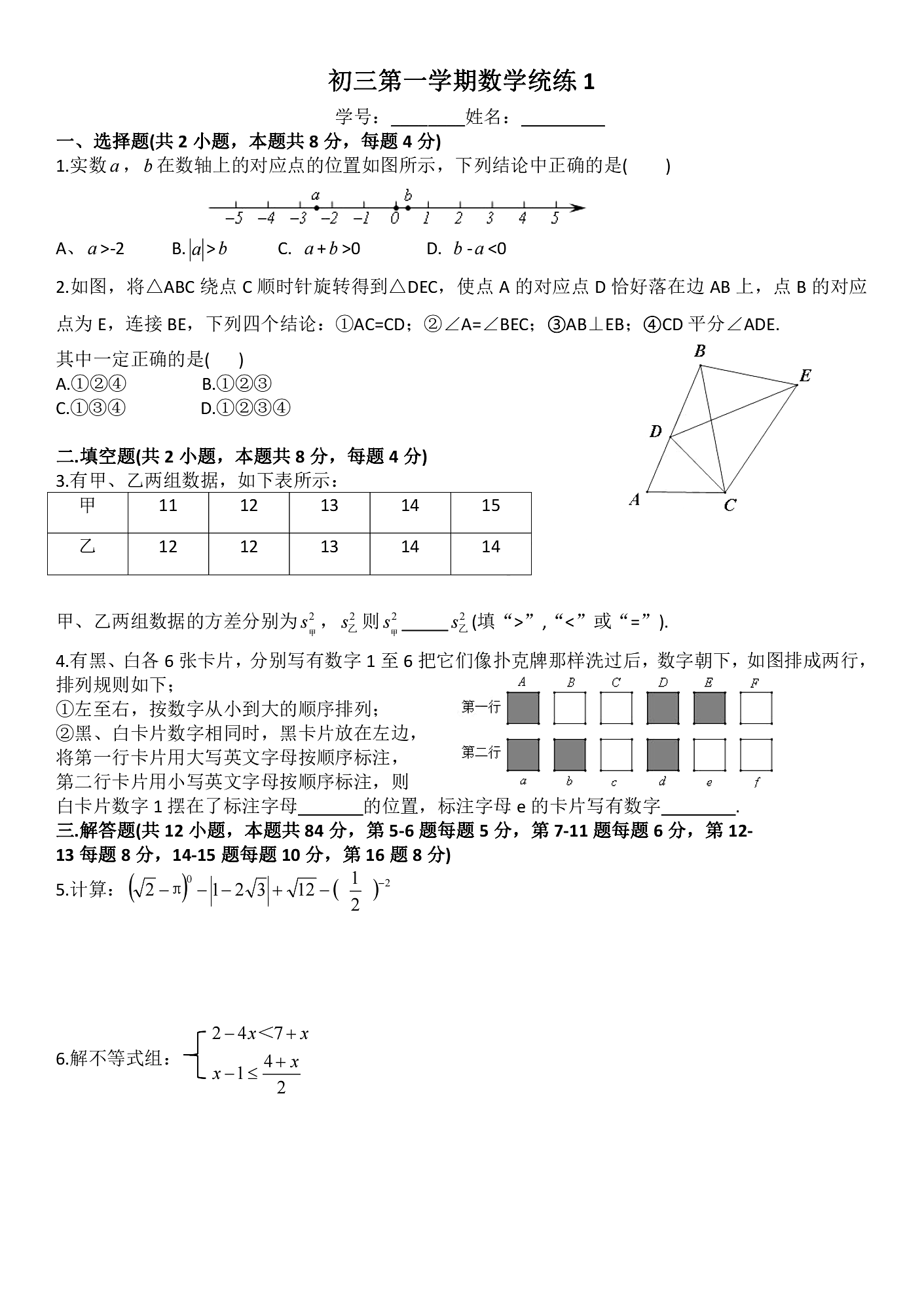本文整理了2023-2024学年北京清华附中本部初三九年级上学期数学统练试题,分享给大家下载练习。