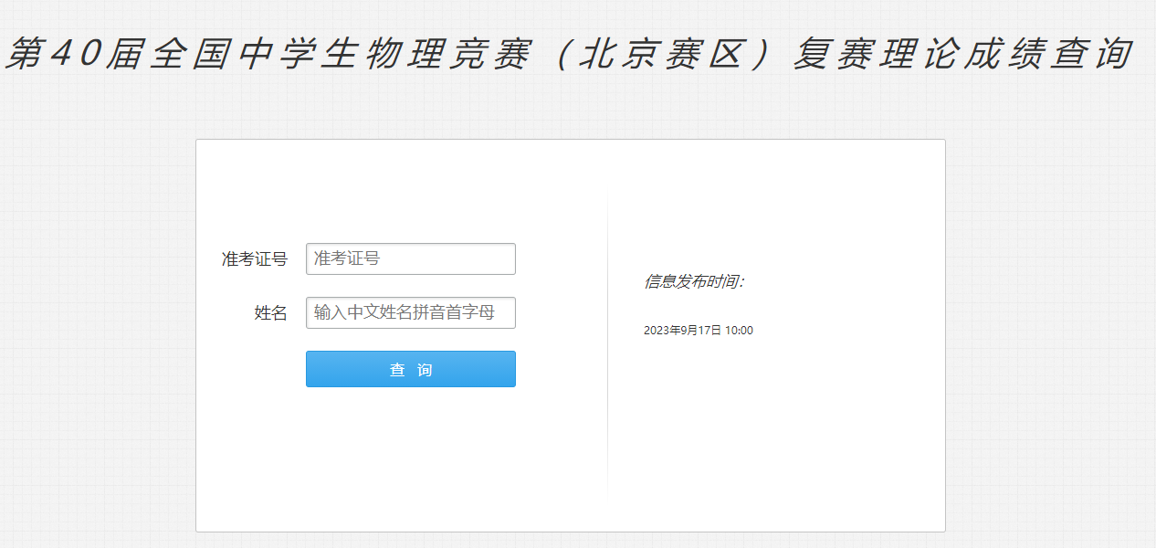 2023年第40届全国中学生物理竞赛复赛北京赛区查分入口