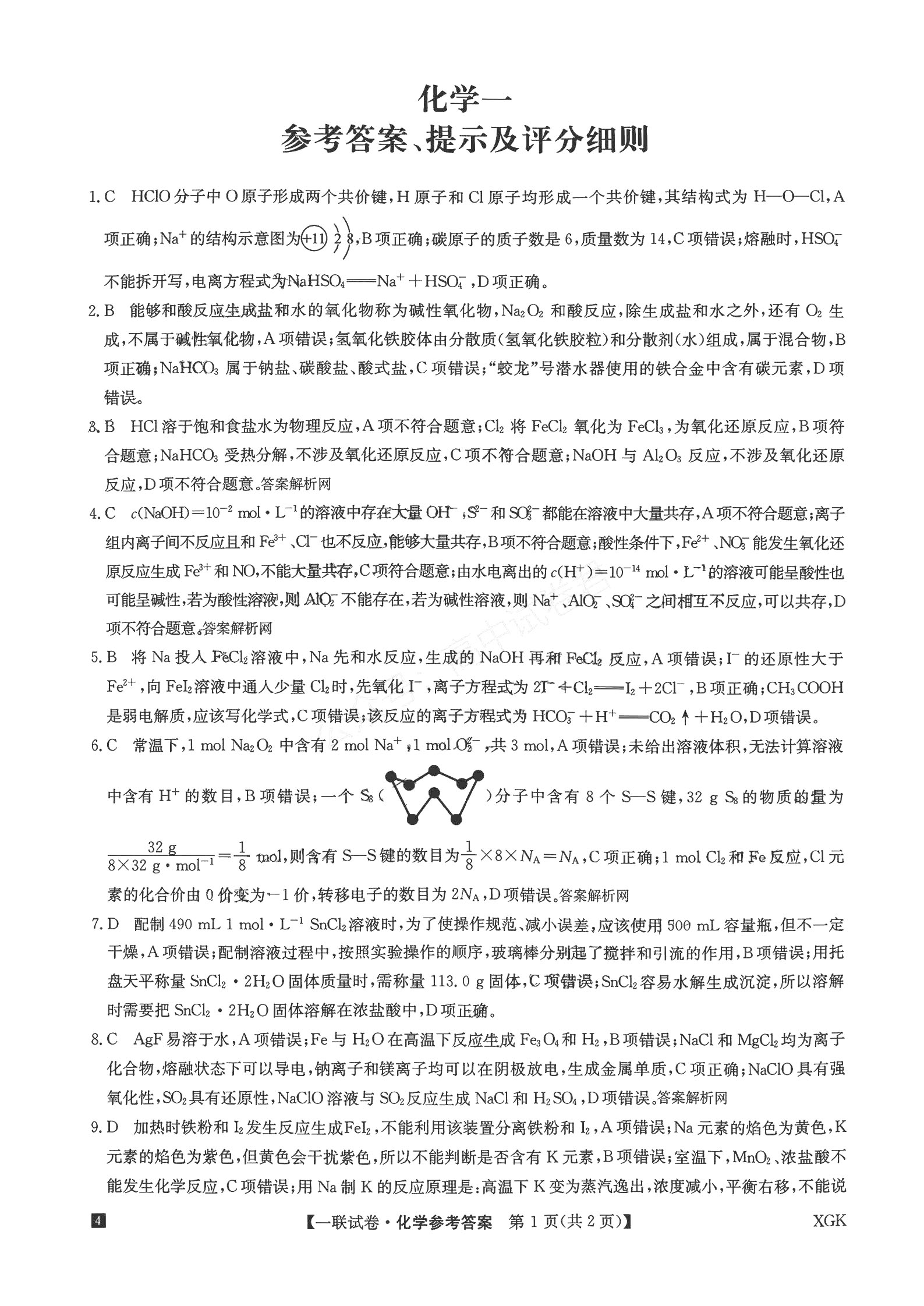 2023年9月中旬,全国名校大联考2023-2024学年高三上学期第一联考(月考)(XGK)如期开考,为帮助各位考生练习本套试题,北京高考在线团队整理了全国名校大联考全科试题答案,本文分享化学科目试题答案给大家参考。