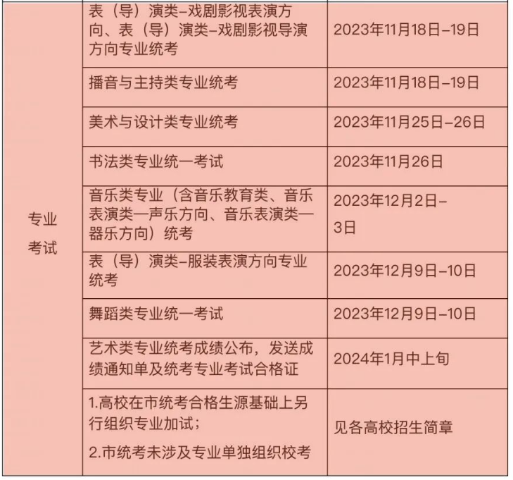 2024年上海市艺术统考时间从2023年11月18日开考,各类别考试时间详见下表: