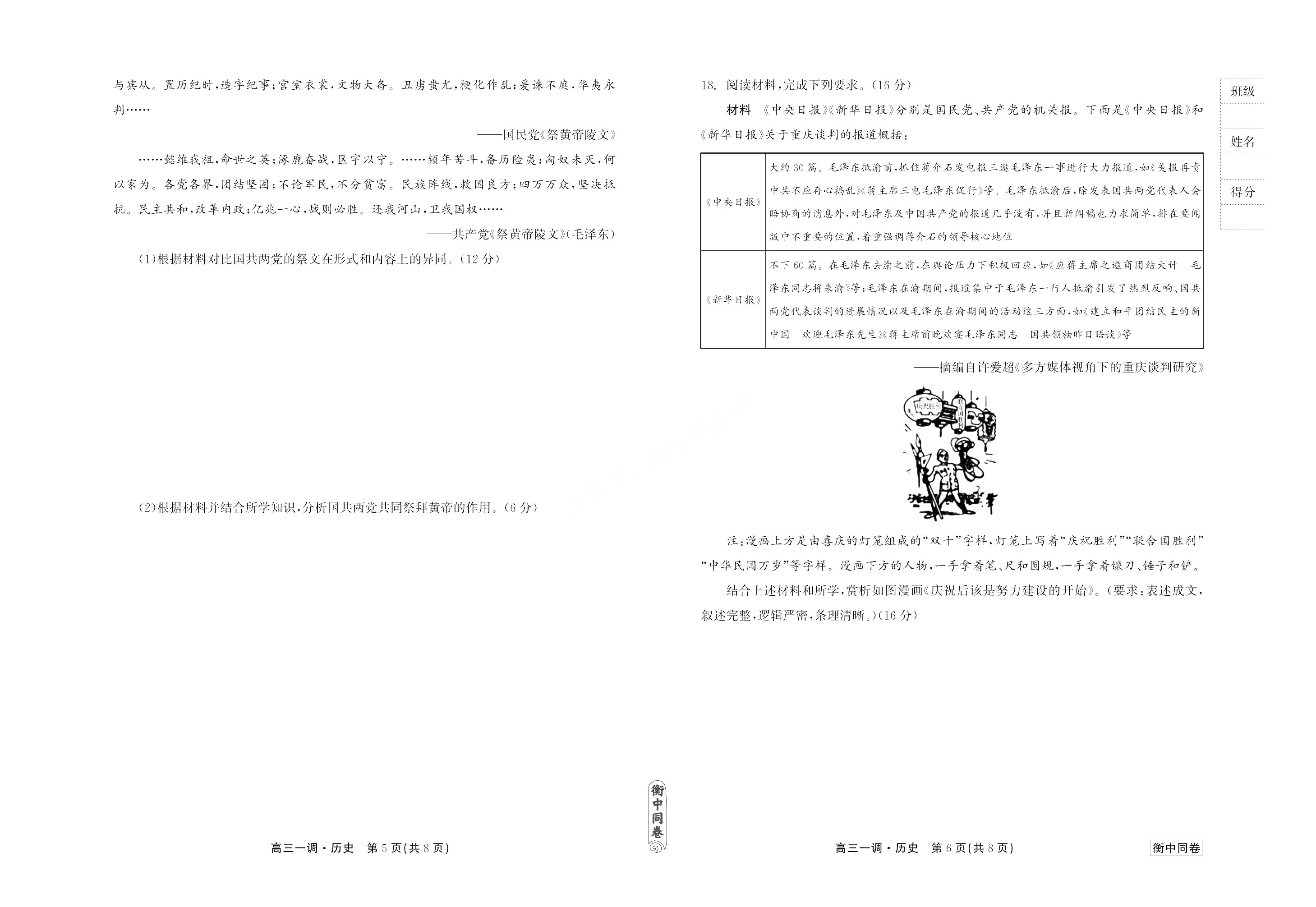 本文整理了衡中同卷2023-2024学年度上学期高三年级一调考试(新高考)历史试题,想要练习的考生在本文下载。
