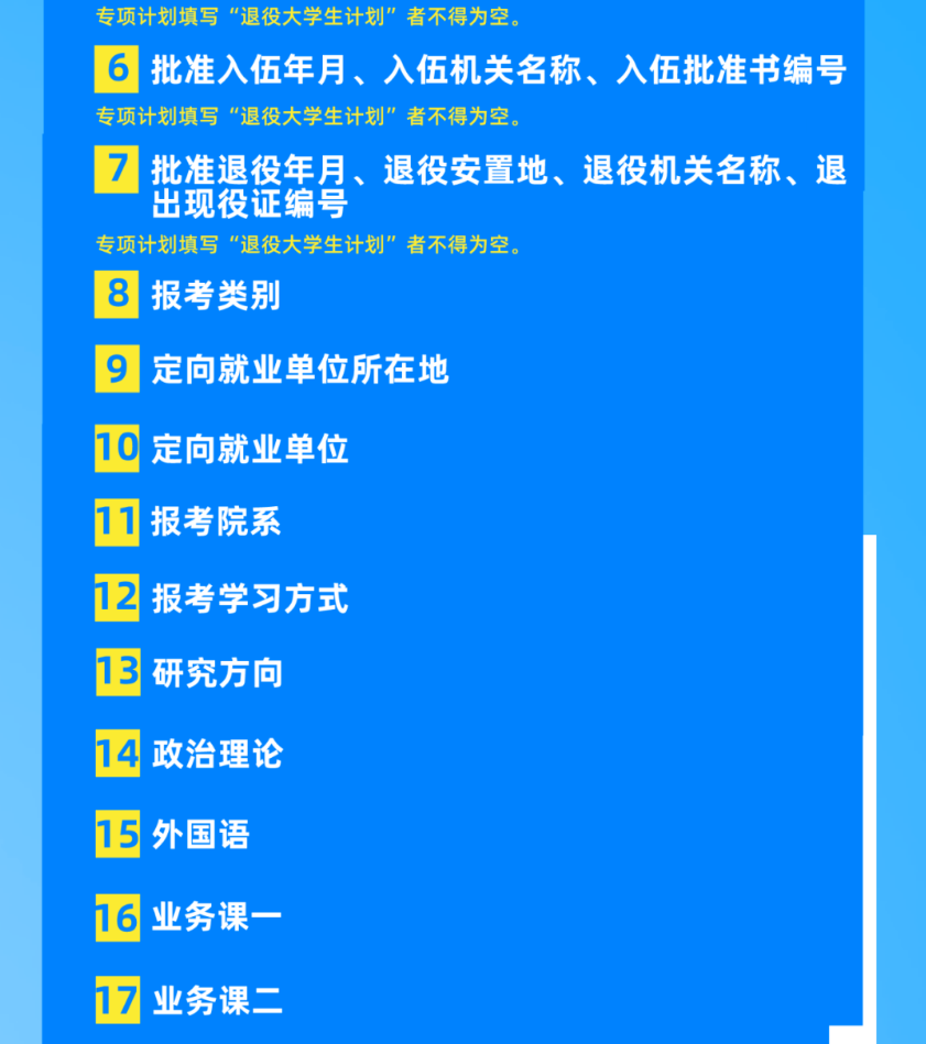 部分招生单位的网报公告或招生章程上会有特殊要求,考生需要将某些信息在报名时填写在该两项中。请考生仔细阅读招生单位的网报公告以及该招生单位招生章程。