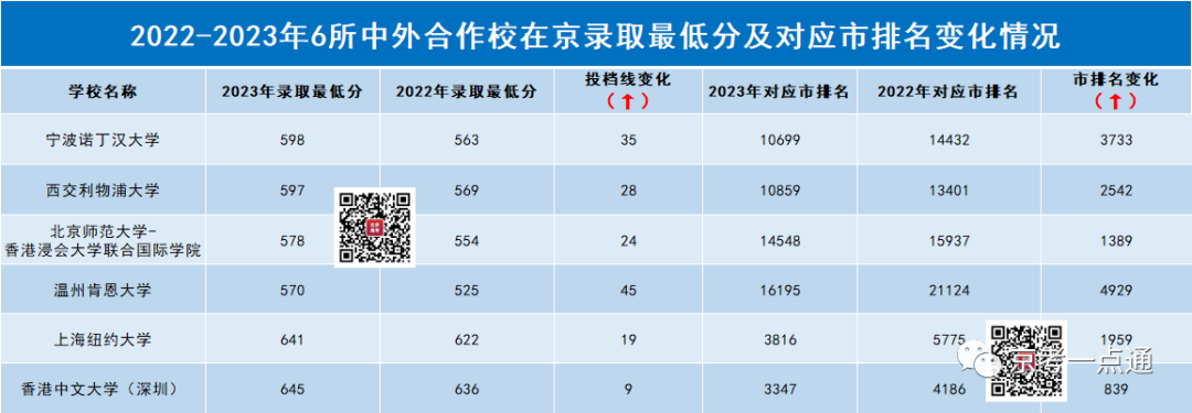 报考中外合办院校需要多少分?对应市排名是多少?北京高考在线整理了6所中外合作校2022-2023年录取分数及排名。