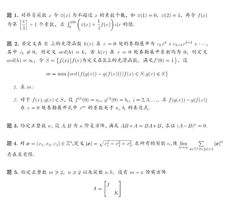 本文给大家分享2023年清华大学领军计划专业测试数学一试试题,分享给大家查看。