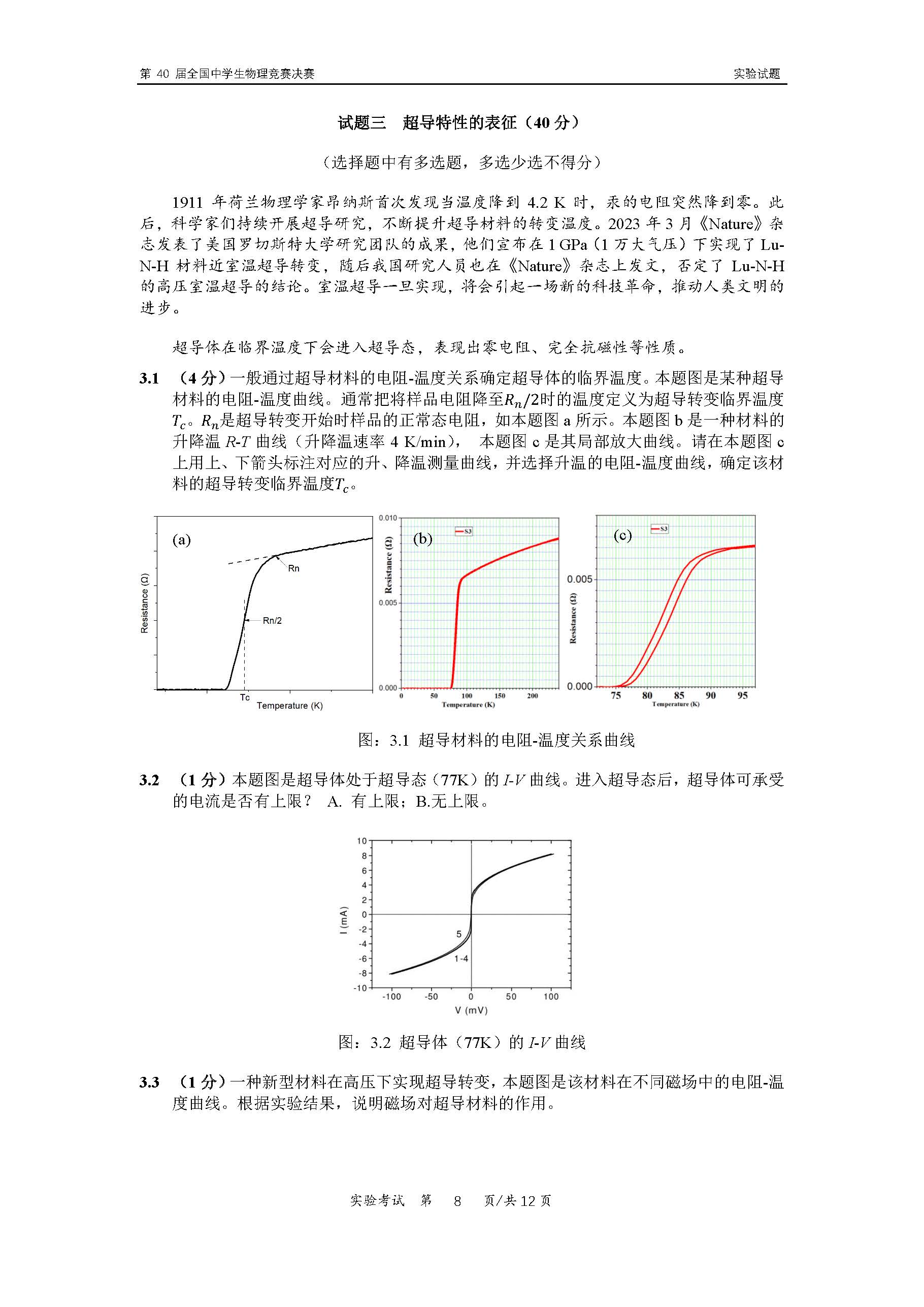 2023年第40届物理竞赛决赛实验完整试题及答案