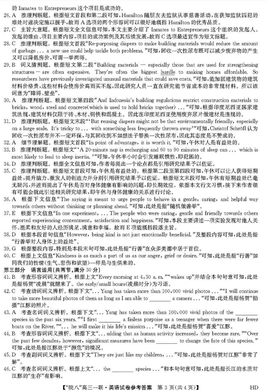 本文整理了2024届皖南八校高三第一次大联考英语试题及答案,分享给同学们下载!