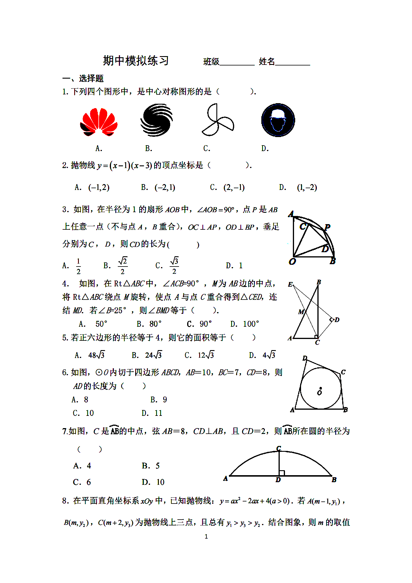 2023-2024年度北京四中初三期中模拟数学试题