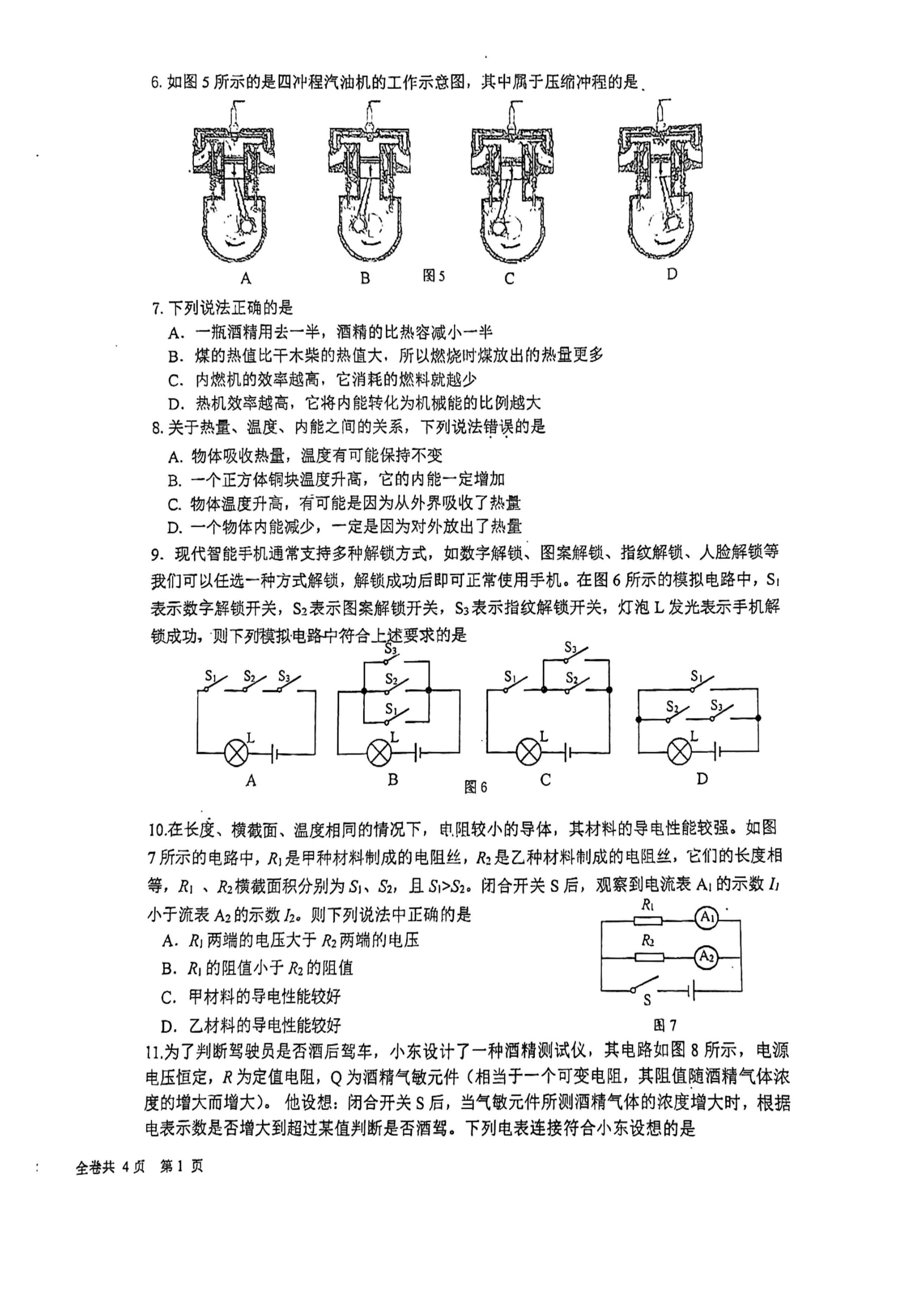 2023-2024学年人大附中朝阳学校初三期中物理试题及答案