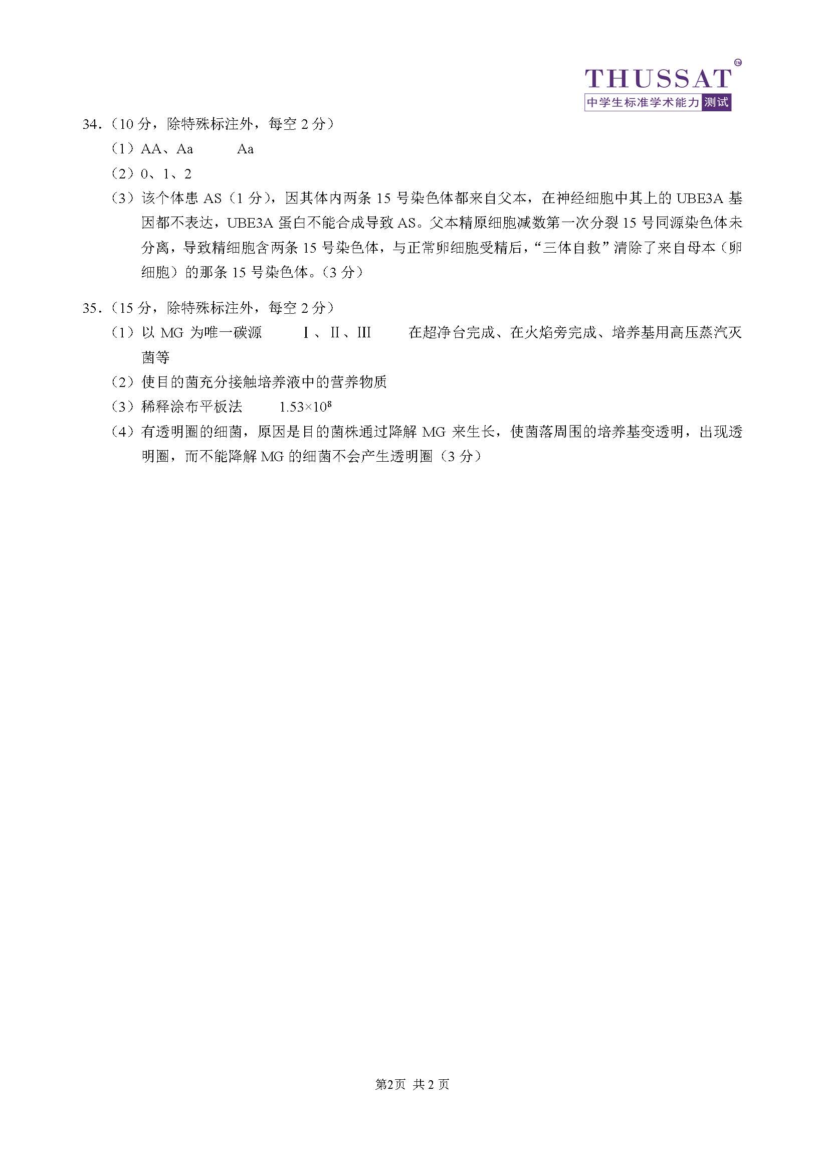 中学生标准学术能力测试thussat2023tda试题答案