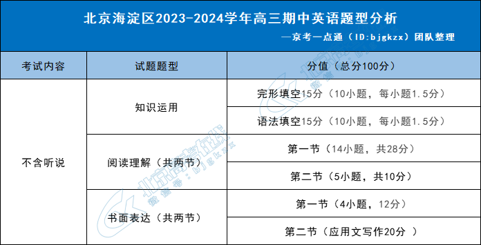 2023-2024学年北京海淀区高三期中已于11月2日结束,为了帮助同学们了解题型情况,北京高考在线团队特意整理了海淀区高三期中英语题型分析,详情如下: