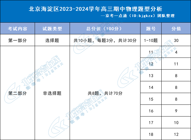 2023-2024学年北京海淀区高三期中已于11月2日结束,为了帮助同学们了解题型情况,北京高考在线团队特意整理了海淀区高三期中物理题型分析,详情如下: