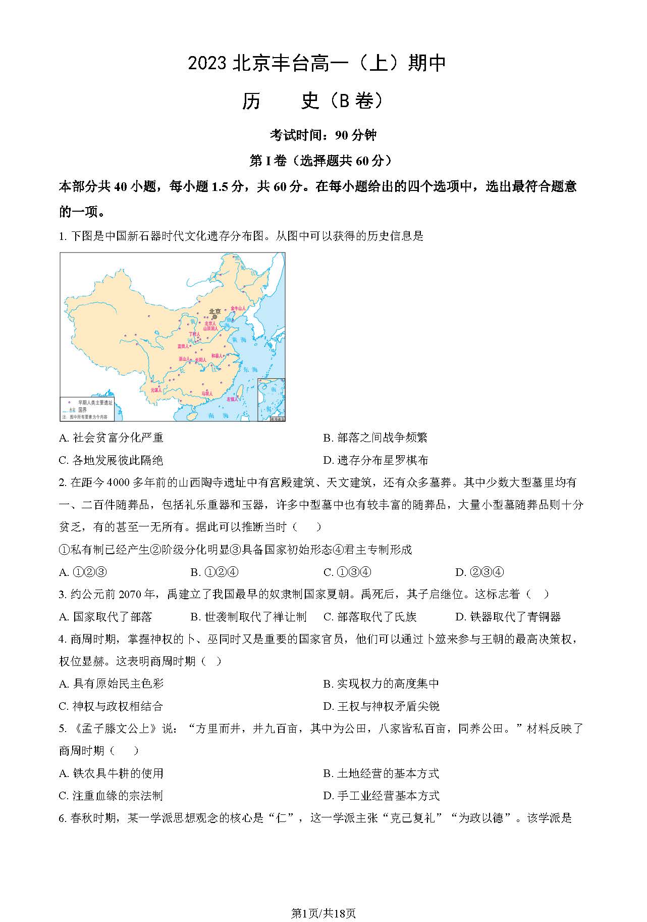 本文整理了2023北京丰台高一(上)期中历史(B卷)试题及答案,分享给同学们下载!