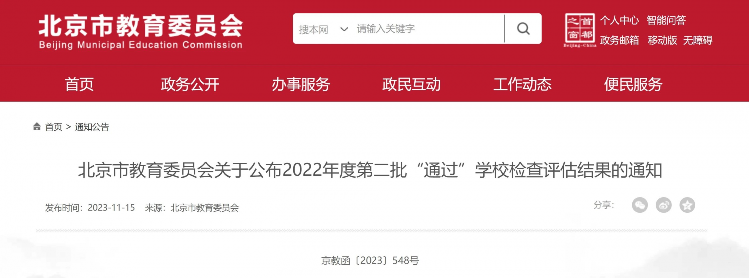 北京市教委日前发布《北京市教育委员会关于公布2022年度第二批“通过”学校检查评估结果的通知》,共7所学校获得“通过”。北京高考在线团队整理了具体内容,详情如下: