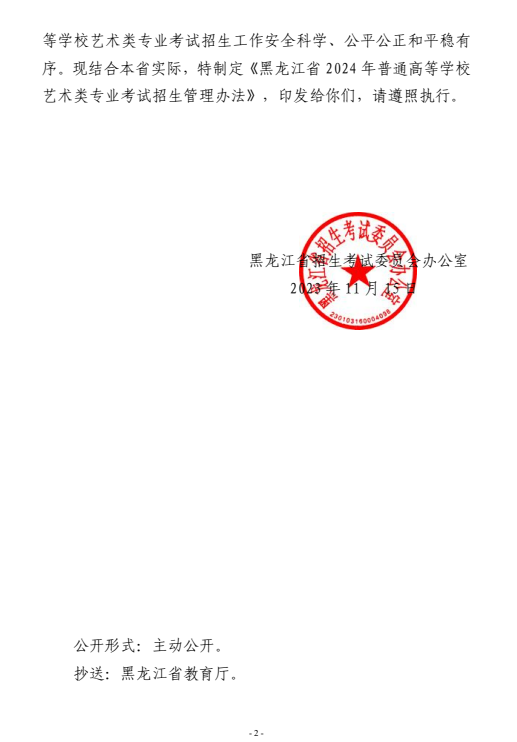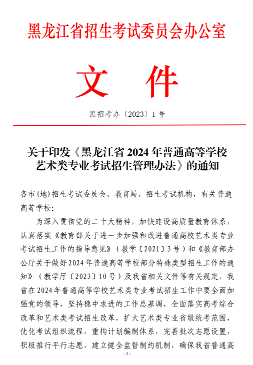 黑龙江省2024年普通高等学校艺术类专业考试招生管理办法