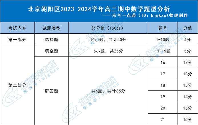 2023-2024学年北京朝阳区高三期中已于11月10日结束,为了帮助同学们了解题型情况,北京高考在线团队特意整理了朝阳区高三期中数学题型分析,详情如下: