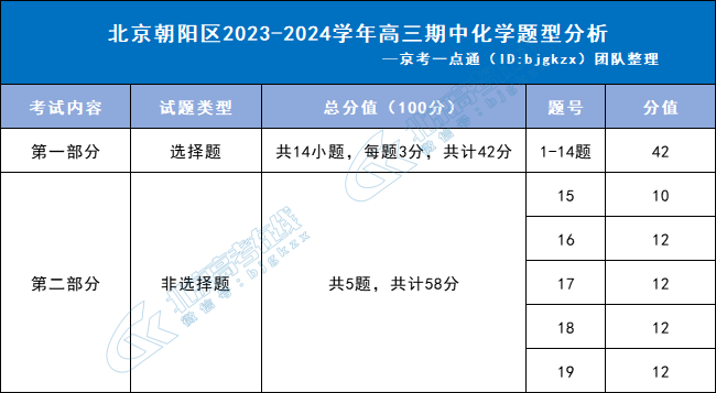 2023-2024学年北京朝阳区高三期中已于11月10日结束,为了帮助同学们了解题型情况,北京高考在线团队特意整理了朝阳区高三期中化学题型分析,详情如下: